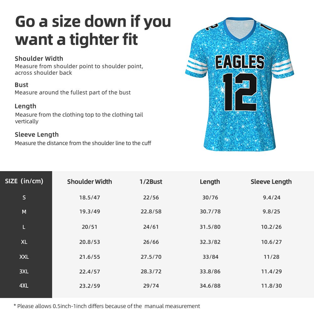 | Ominaisuus: | V-kaula-aukko, ihoystävällinen, mukava, kosteuden imeytyminen, Faux Glitter Design, jalkapalloteema |