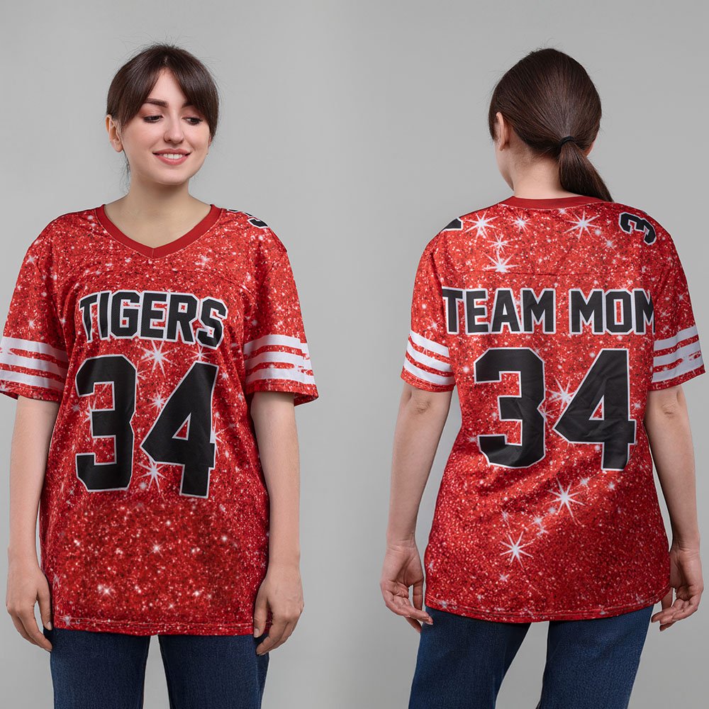 Tässä pelipaidassa on jäljitelty glitter-malli, jossa yhdistyvät täydellisesti urheilun intohimo ja muotivirtaukset. Se on saatavana 6 värissä: vaaleanpunainen, violetti, sininen, punainen, keltainen ja vihreä. Lisäksi ainutlaatuinen muotoilu, jossa nimet ja numerot ovat räätälöitävissä, tekee jokaisesta pelipaidasta täynnä henkilökohtaisia ominaisuuksia. Olitpa sitten tukemassa lapsia, rakastamassa joukkuetta tai räätälöimässä erityistä pelipaitaa itsellesi, voit näyttää rakkautesi ja ylpeytesi.