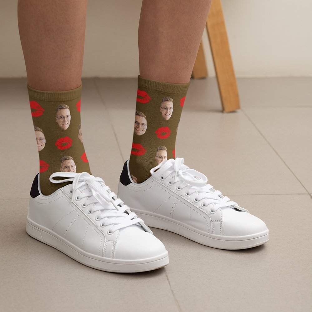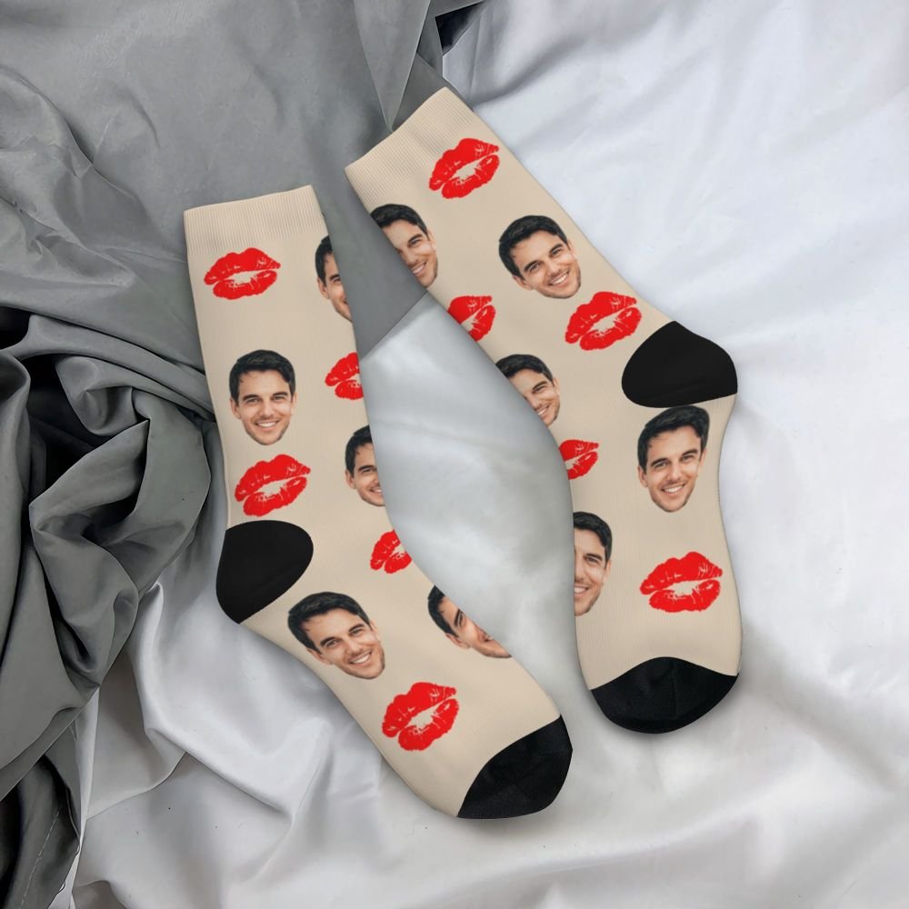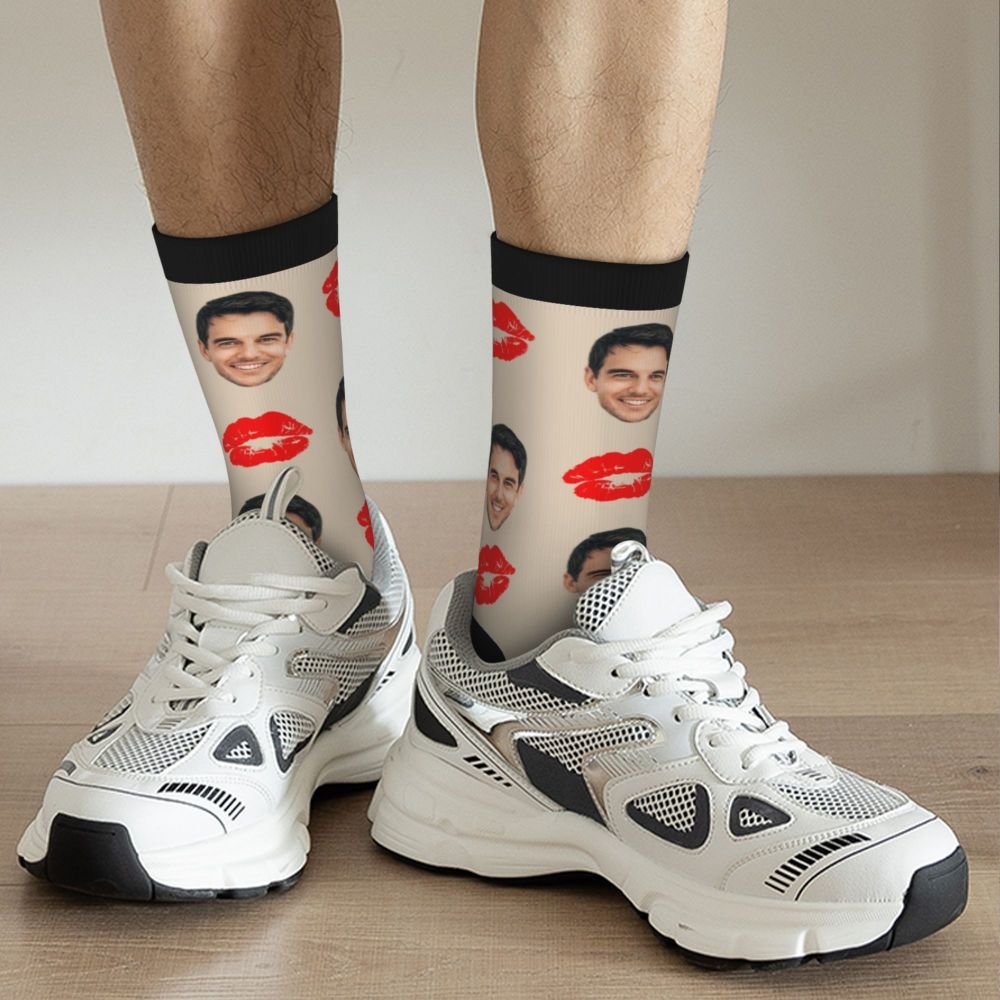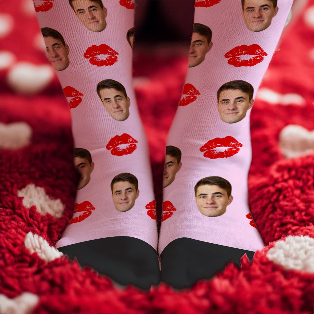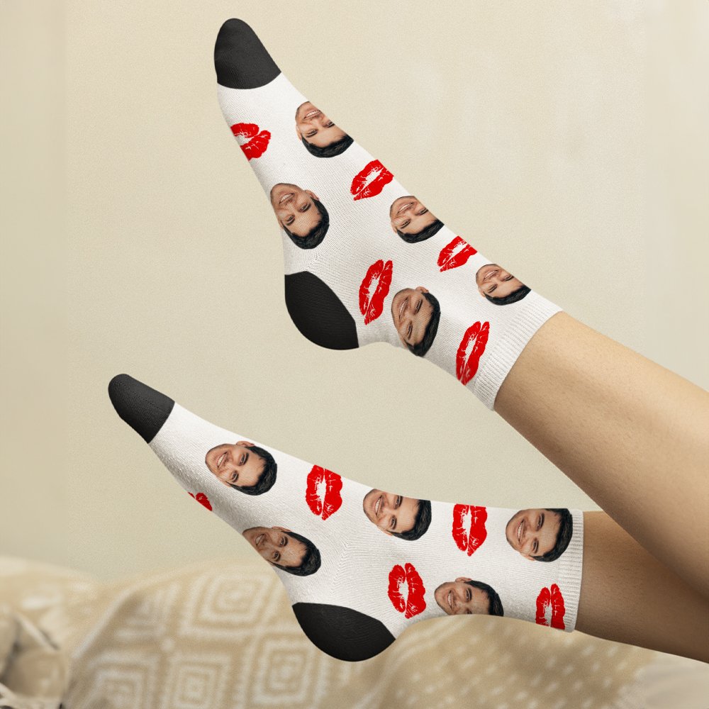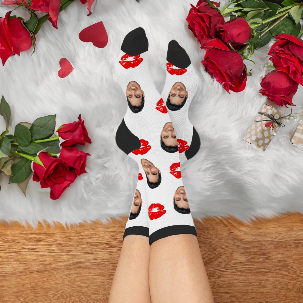 Henkilökohtainen monivärinen muotokuva valokuva punainen huuli tulostaa suunnittelu putki sukat Ystävänpäivä vuosipäivä lahja pariskunnalle
