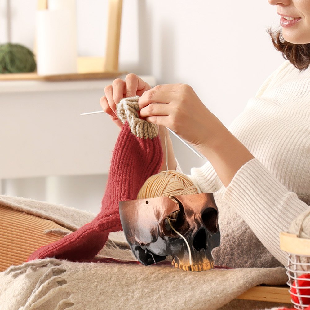 Tämä pääkallokulho ei ole vain näyttäytymistä varten, vaan se pitää tehokkaasti langan, kun virkkaat tai neulot. Sen muotoilu estää sotkeutumisen ja pitää tarvikkeesi järjestyksessä, mikä parantaa käsityökokemustasi.