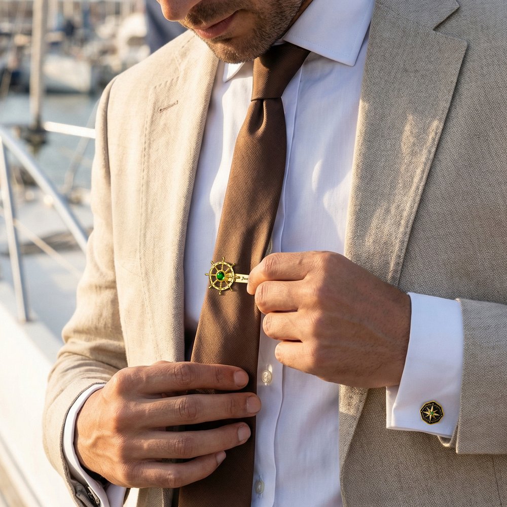 Häätilaisuuksiin suunnitellut: kalvosinnapit kiinnittävät paidan hihansuut ja lisäävät samalla hienostuneita yksityiskohtia; solmionpidin pitää solmion tasaisena ja paikallaan liikkumisen ja valokuvien aikana; rahanpidin pitää käteistä ja kortteja siististi ja helposti saatavilla. Joustavia vaihtoehtoja ovat kalvosinnapit & rahaklipsi & solmionpidin, kalvosinnapit & solmionpidin, kalvosinnapit & rahaklipsi, rahaklipsi & solmionpidin tai pelkät kalvosinnapit, joten ne on helppo yhdistää eri pukujen ja häälookien kanssa.