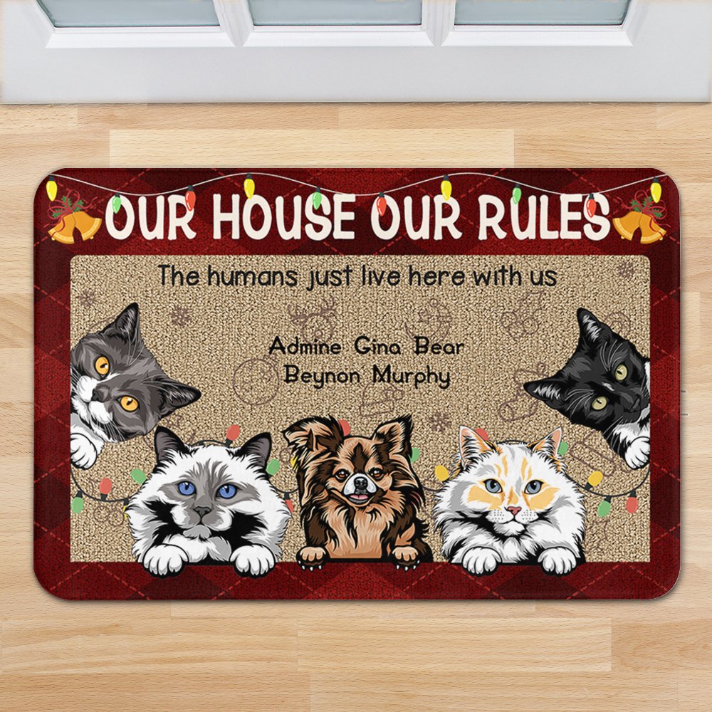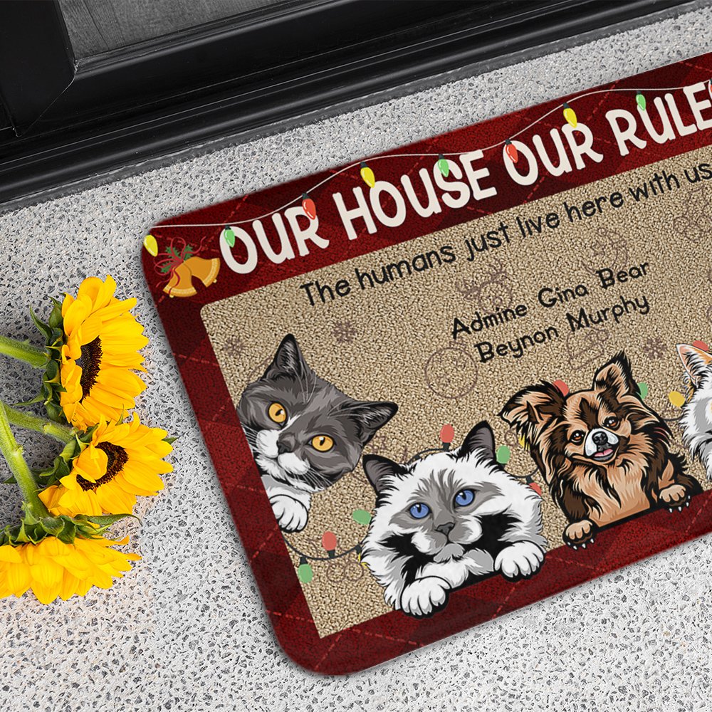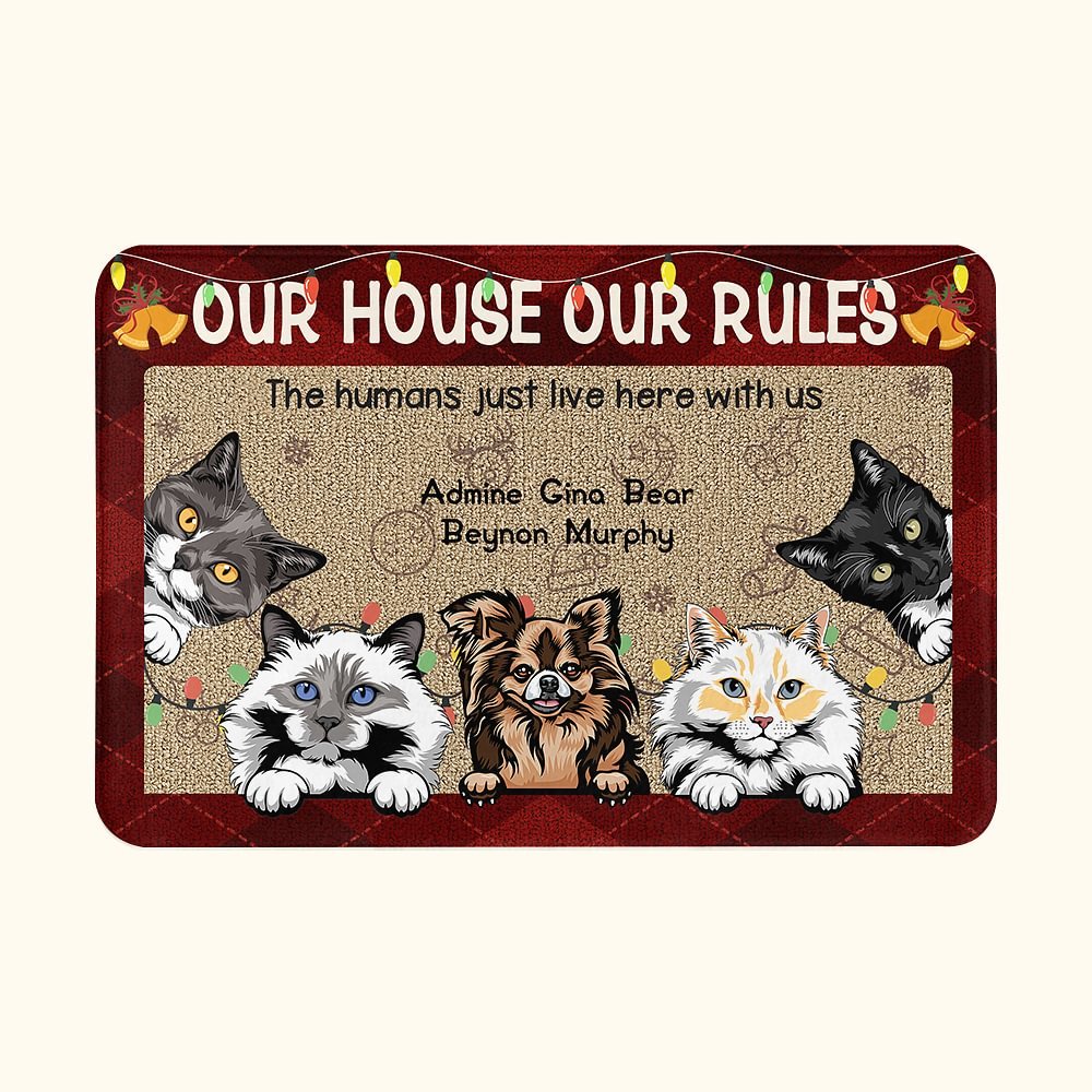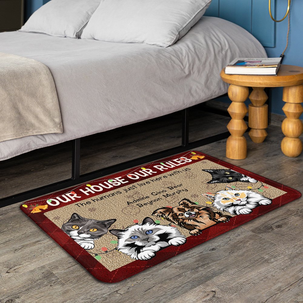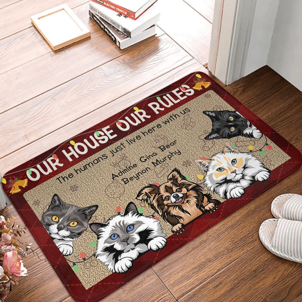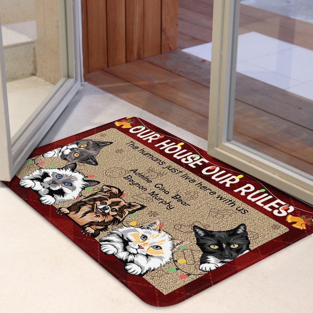 The message "Our House,Our Rules" is beautifully printed on the floor mat, means that pets are human family members too.