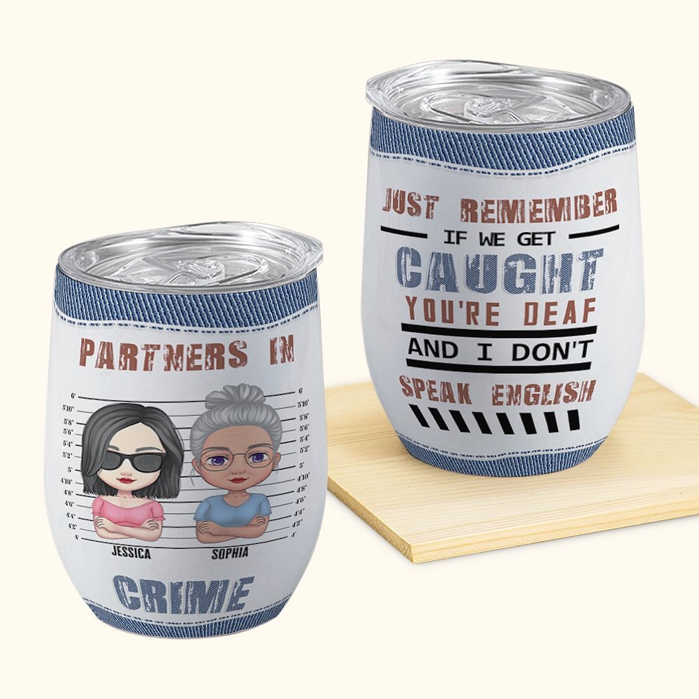 The "Partners In Crime" quote celebrates the unbreakable bond you share with your best friend. And what sets this wine tumbler apart is the personalization. You can add names and design that perfectly captures your friendship.