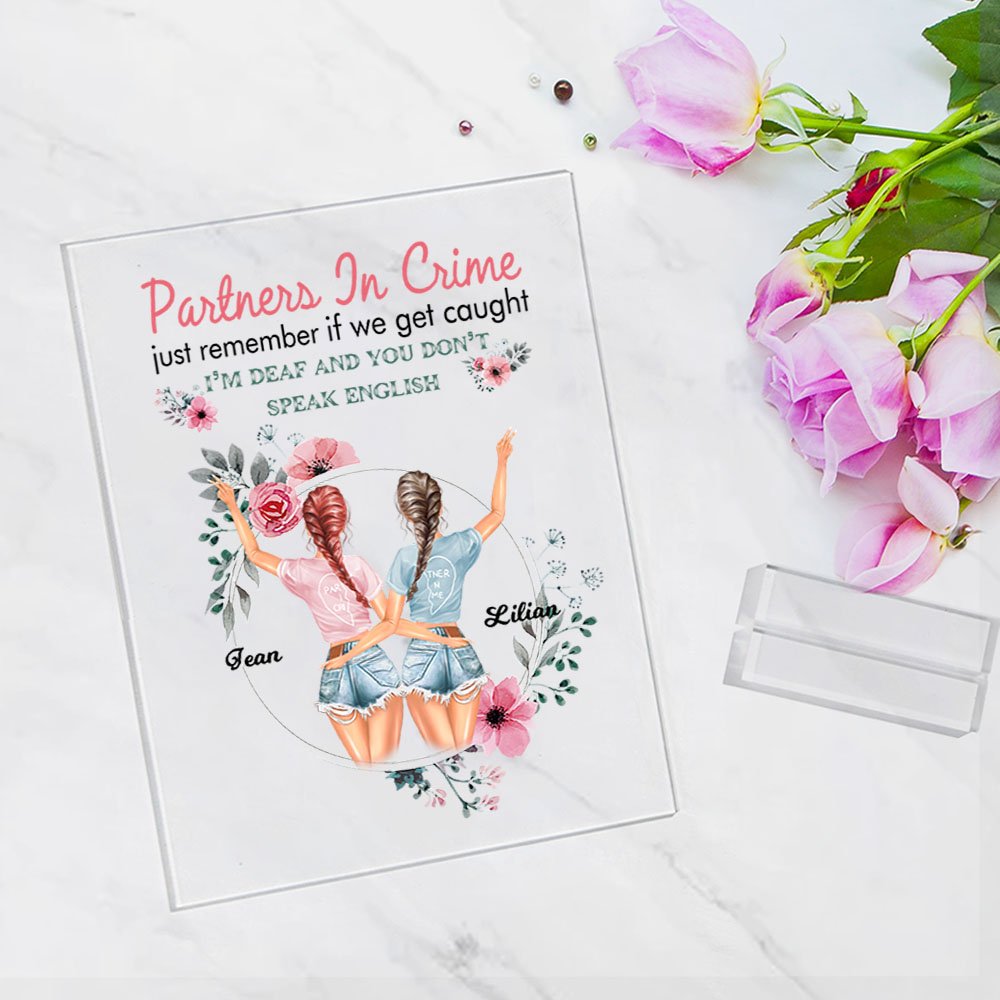 This acrylic plaque is the perfect gift for your best friend as it can be customized with your and your friend's name and appearance, adding a personal touch to the gift.