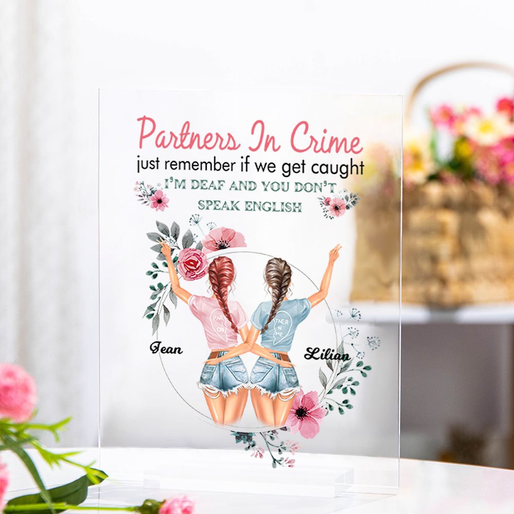 Henkilökohtainen Rikostoverit Muista vain, jos jäämme kiinni, olen kuuro ja sinä et puhu englantia Akryylilaatta Akryylinen koriste
