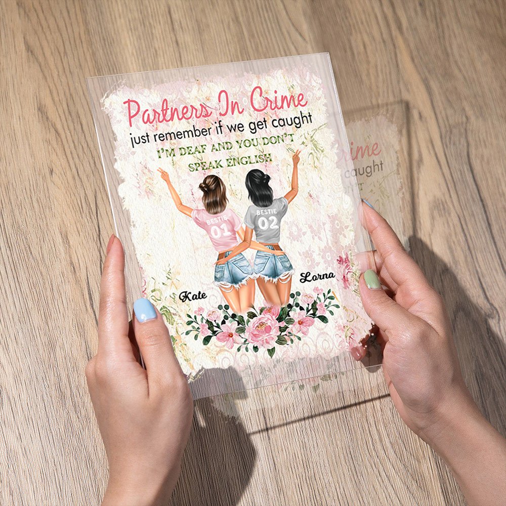 This acrylic plaque is the perfect gift for your best friend as it can be customized with your and your friend's name and appearance, adding a personal touch to the gift.