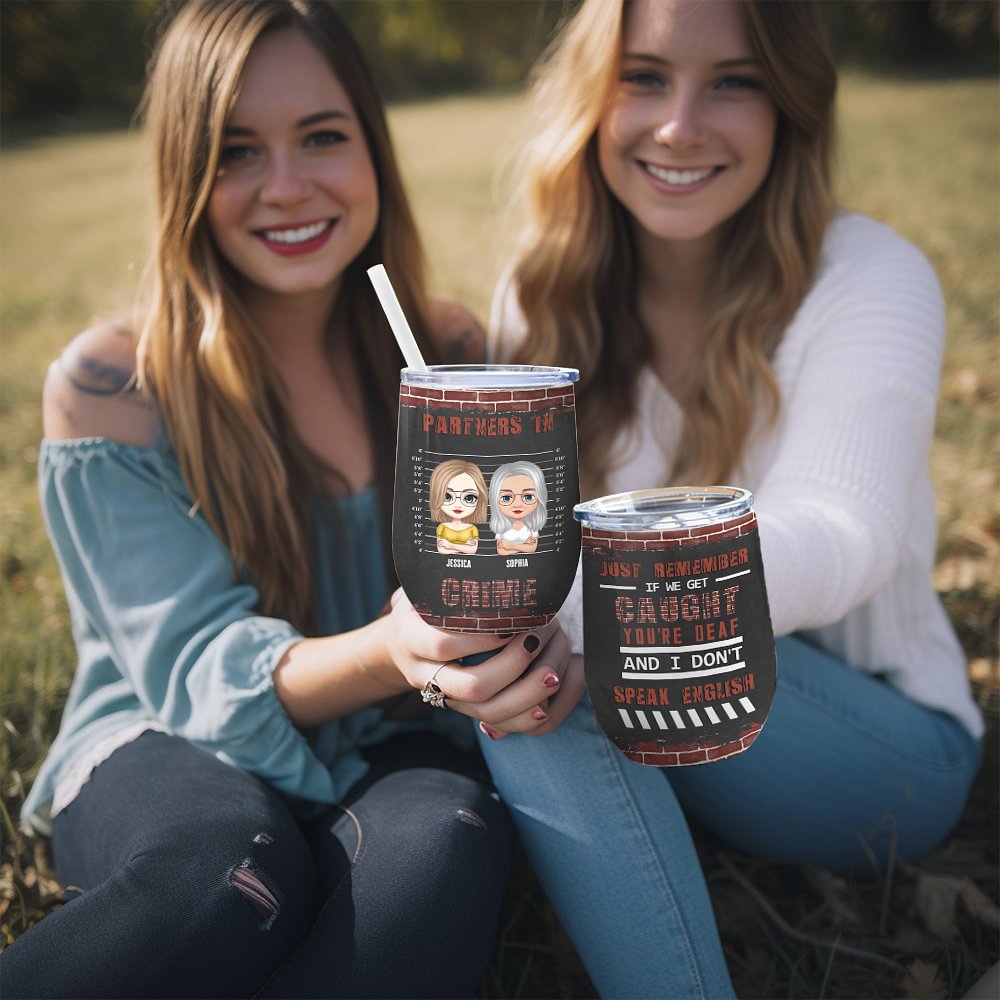 The "Partners In Crime" quote celebrates the unbreakable bond you share with your best friend. And what sets this wine tumbler apart is the personalization. You can add names and design that perfectly captures your friendship.