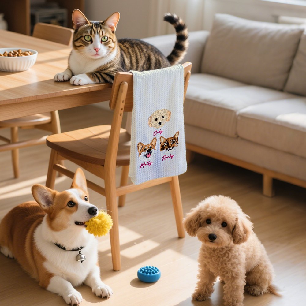 Tämä teepyyhe on saanut inspiraationsa lemmikkien seuran syvällisestä kiintymyksestä ja arvostuksesta. Lemmikkisi ihastuttavan muotokuvan ja nimen hienovarainen kirjailu painaa nämä sydäntälämmittävät hetket arkipäiväisiin esineisiin, mikä tekee jokaisesta käyttökerrasta ainutlaatuisen ja tunteikkaan kunnianosoituksen rakkaimmilleen.