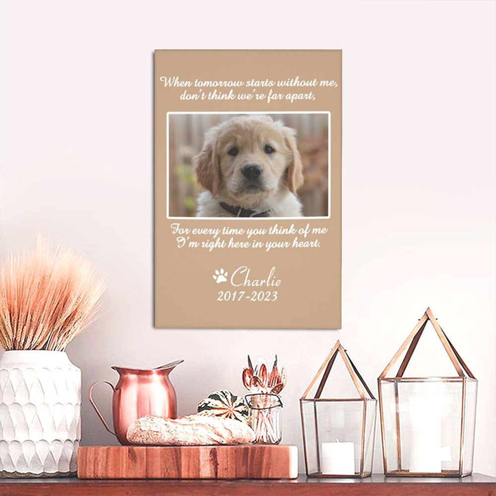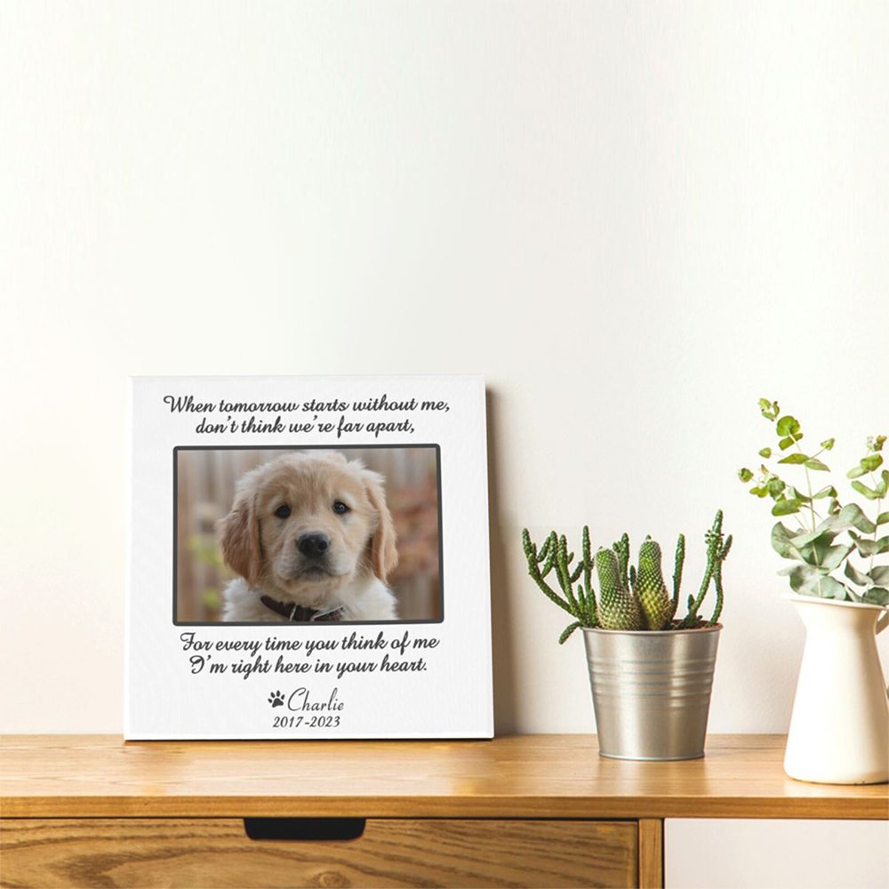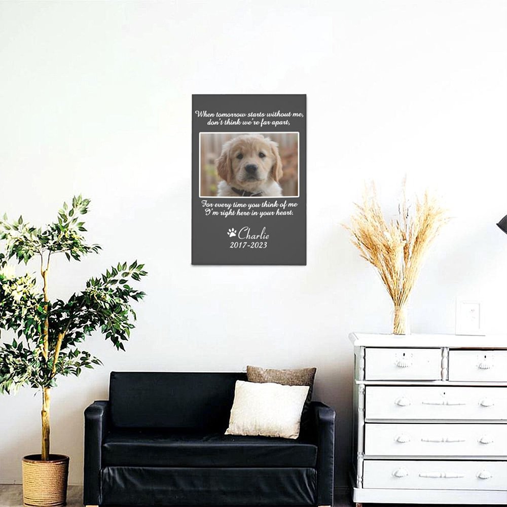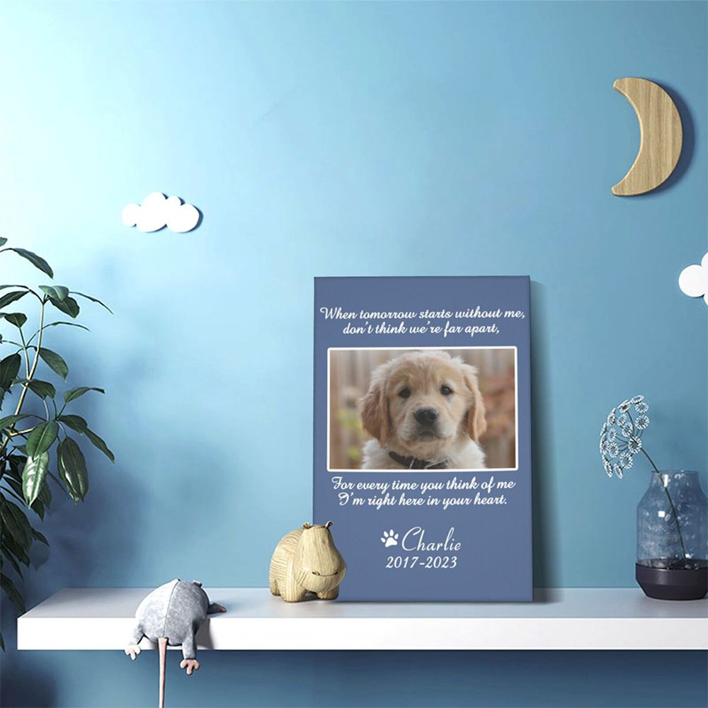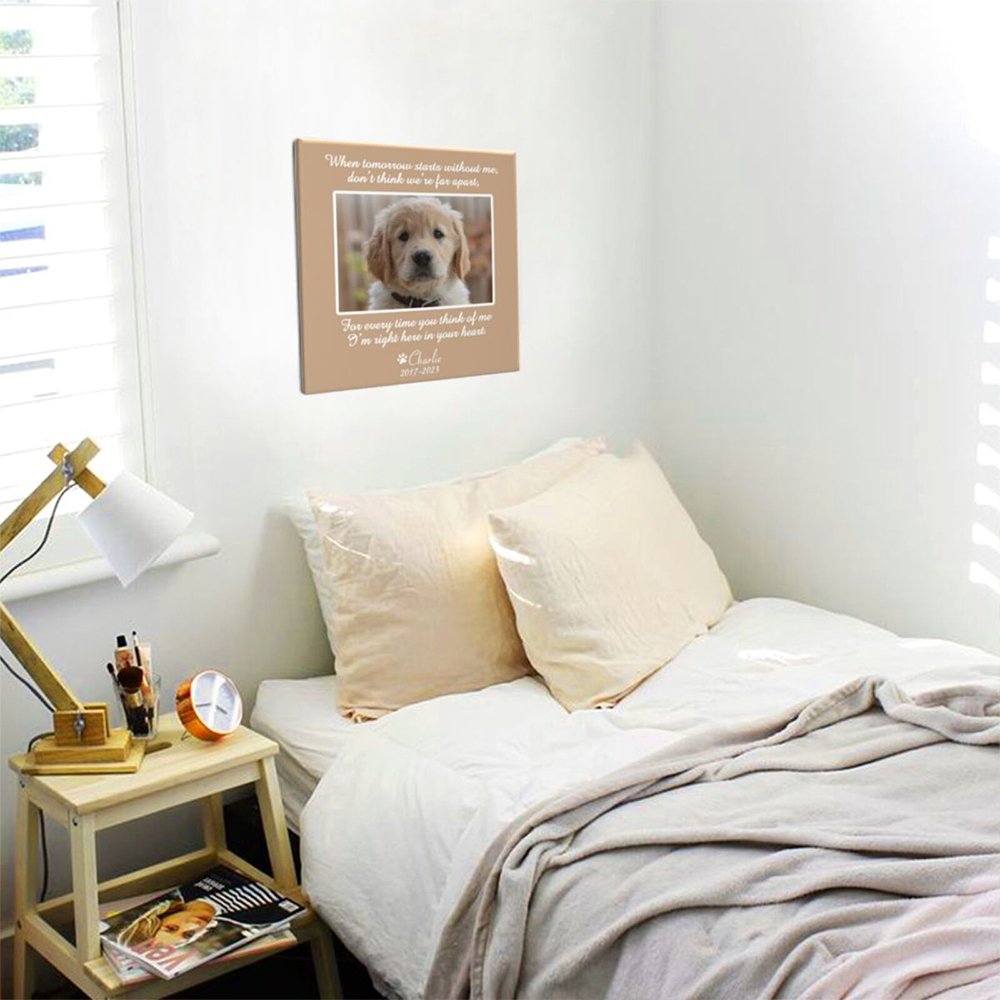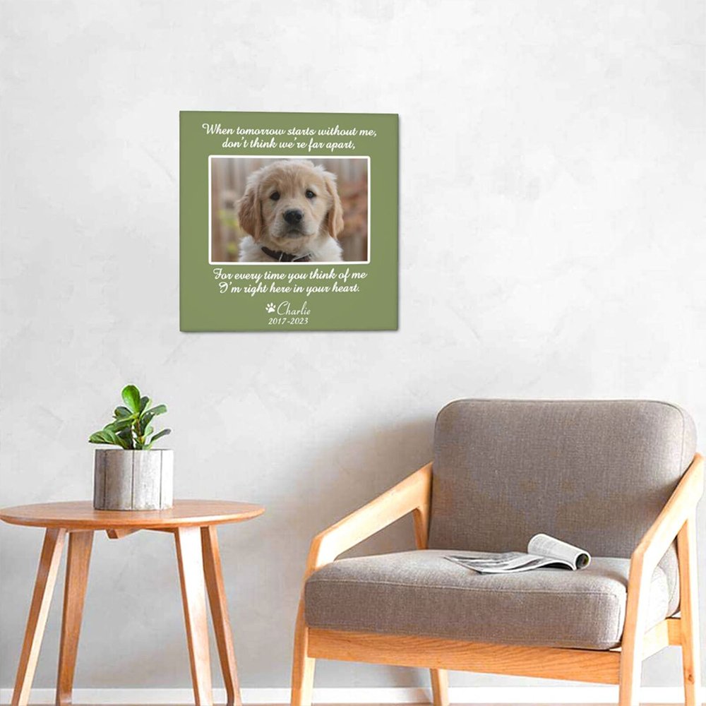 Our personalized pet photo canvas painting offers a beautiful and unique way to remember and honor your beloved pet. This custom wall decor piece captures the essence of your pet through a portrait. You can add your pet's photo and name to create a unique painting.