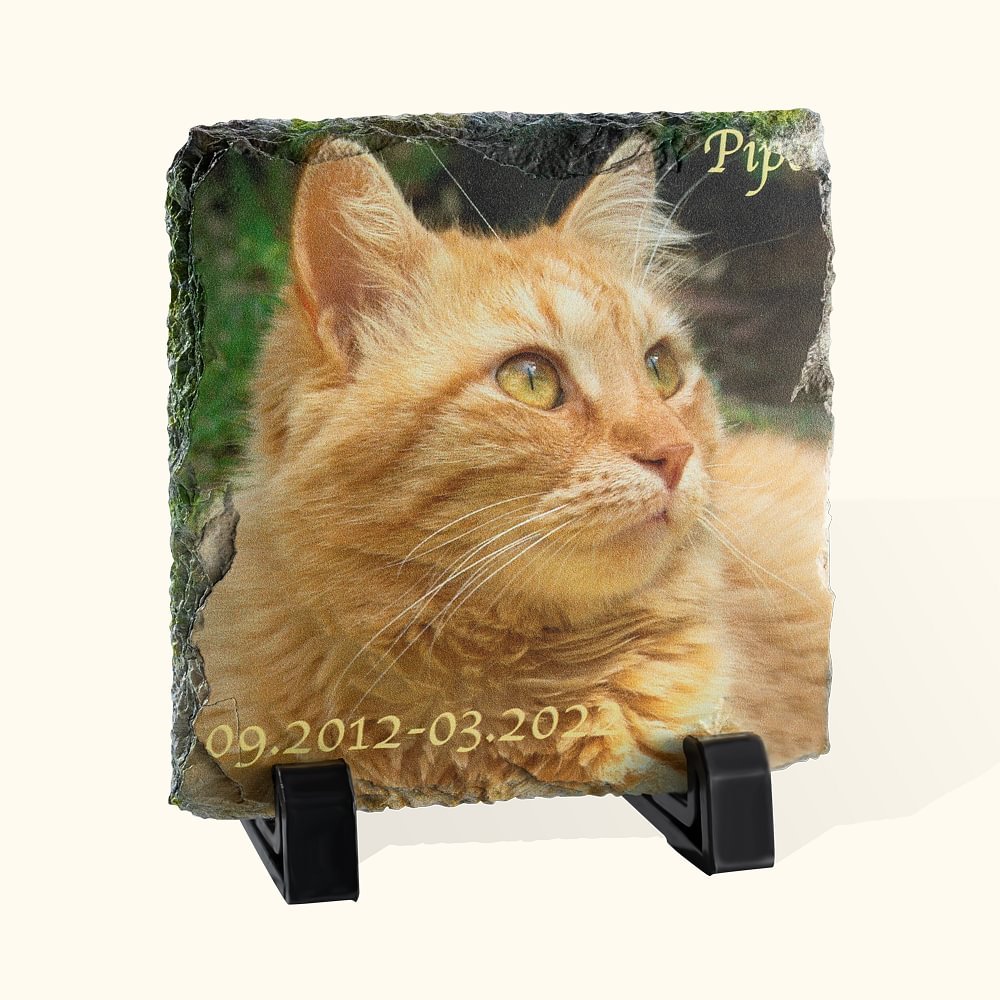 This beautiful natural slate will display your favorite pet photos in an awesome way. Your photos will be permanently heat pressed to the smooth surface of the slate and will never chip, fade or peel.