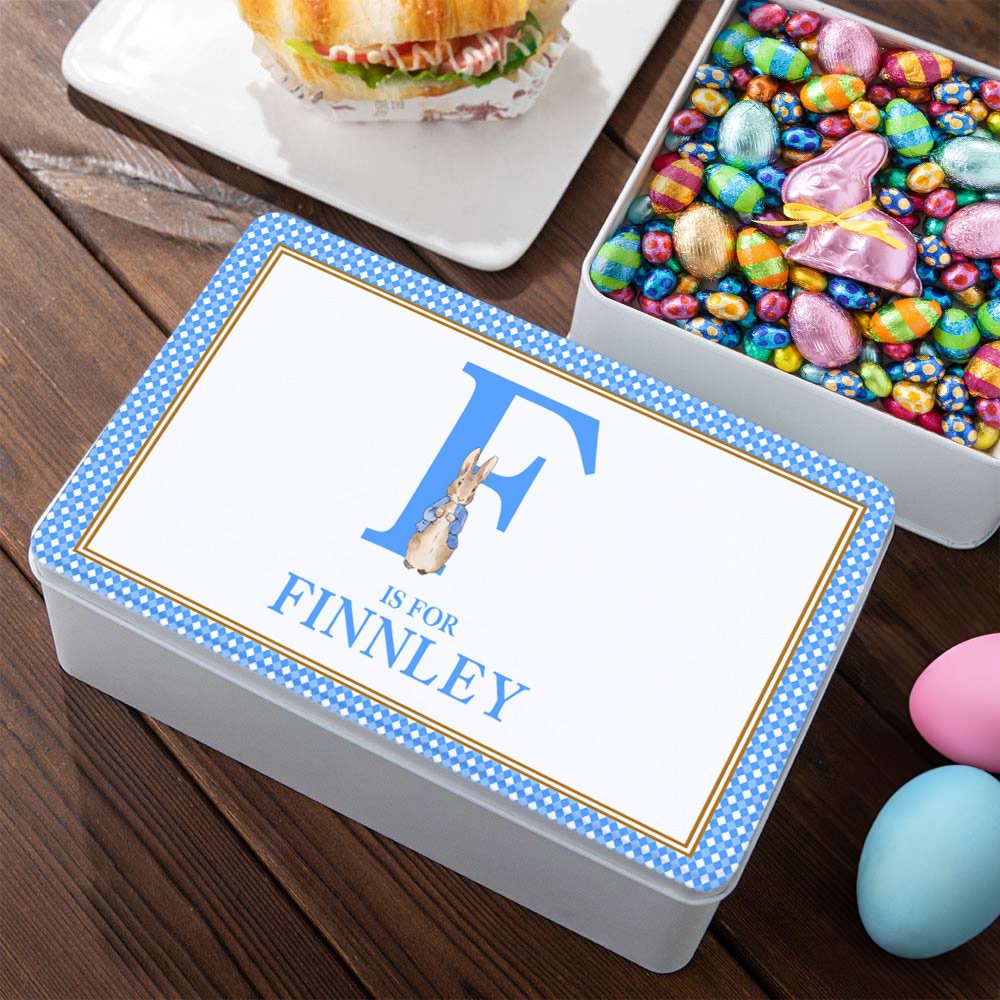Tässä laatikossa on klassinen sininen ja vaaleanpunainen ruudullinen muotoilu, joka antaa sille raikkaan ja miellyttävän visuaalisen kokemuksen. Kanteen on painettu söpö Peter Rabbit -kuvio, joka lisää juhlan hauskuutta. Laatikko voidaan myös räätälöidä nimikirjaimilla ja nimillä, jotta siitä tulisi entistäkin eksklusiivisempi.