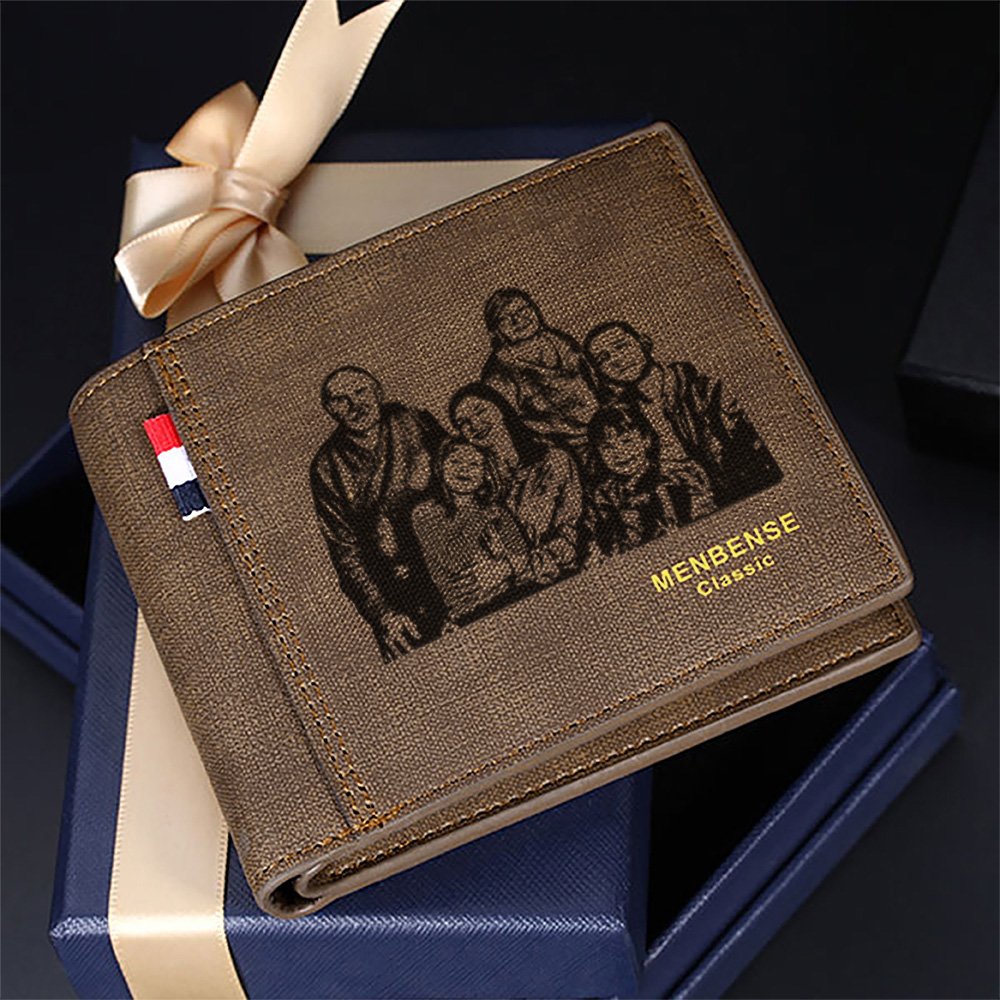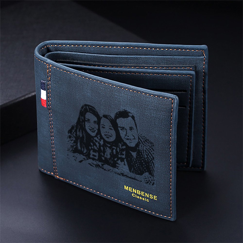 Tässä miesten lompakossa on kaksi räätälöintityyliä: valokuva + nimi + nimikirjaimet tai valokuva + teksti. Se mahdollistaa täysin henkilökohtaisen kosketuksen, mikä luo ainutlaatuisen ja merkityksellisen lahjan hänelle.