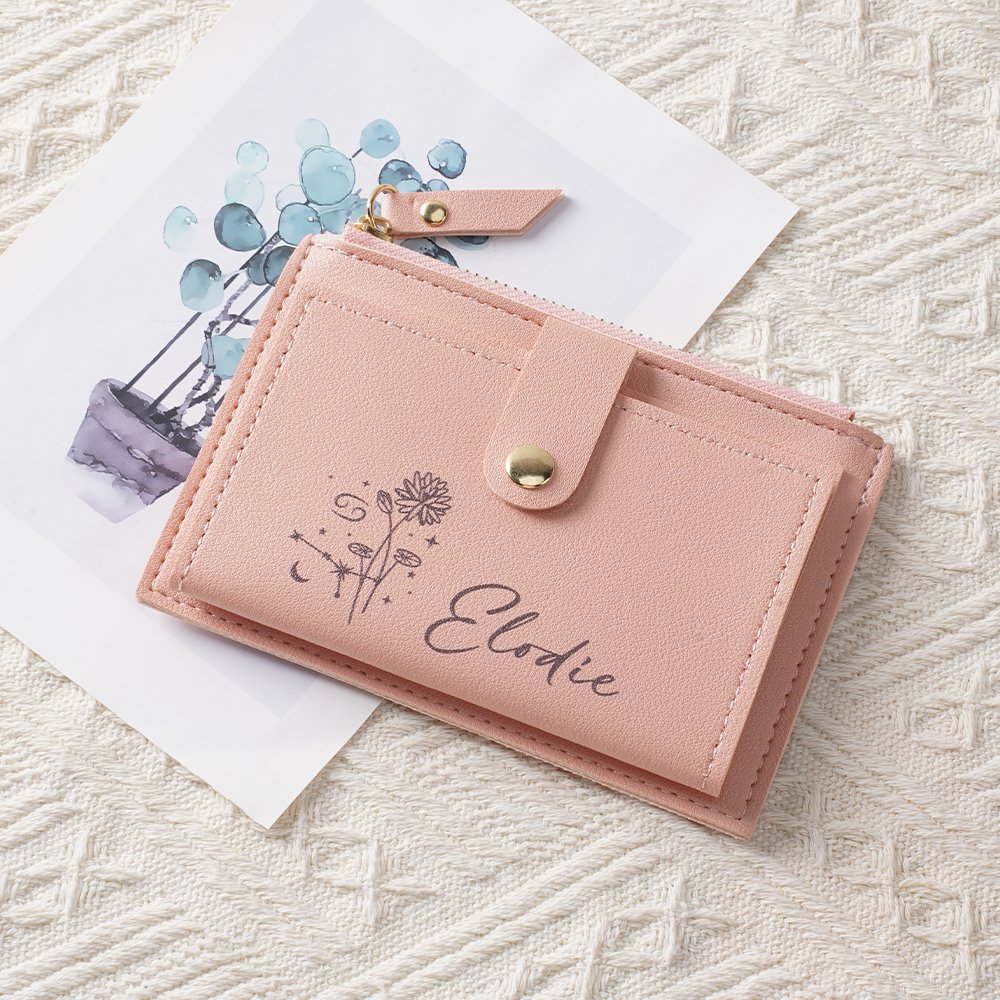 Tämä lompakko voidaan räätälöidä tähtikuvioilla ja vastaavilla syntymäpäiväkukilla, jotka symboloivat persoonallisuuden piirteitä ja sisäistä viehätystä, syvällistä merkitystä ja suurta kauneutta. Mukauta nimesi tyylikkäillä fonteilla, jotta siitä tulee ainutlaatuinen ja eksklusiivinen lisävaruste. Käytitpä sitä sitten itse tai annat sen muille, se osoittaa makusi ja huolenpitosi.