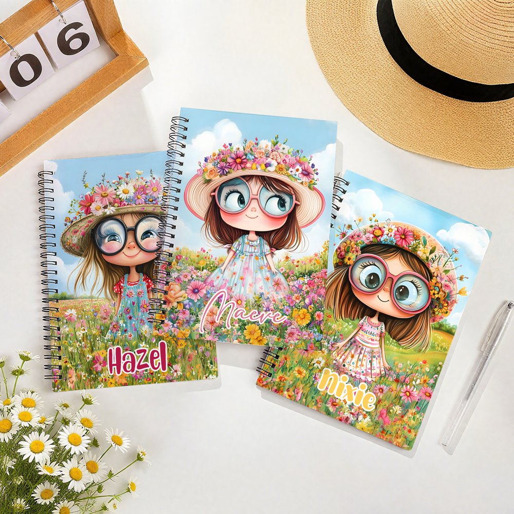 Tämä henkilökohtainen spiraalimuistikirja tarjoaa kaksikymmentä erilaista kukkatyttökuviota, joista jokainen on täynnä lapsenomaista viehätystä ja taiteellisuutta. Voit myös valita spiraalikelan värit ja jopa muokata muistikirjaa nimellä, ja käytettävissä on erilaisia kirjasintyylejä ja värejä, joita voit yhdistellä. Mukana on varmasti makuusi sopiva vaihtoehto. Se luo eksklusiivisia, yksilöllisiä paperitarvikkeita tytöille, jotka ovat täynnä trendikästä ja ihastuttavaa taiteellista tunnelmaa.