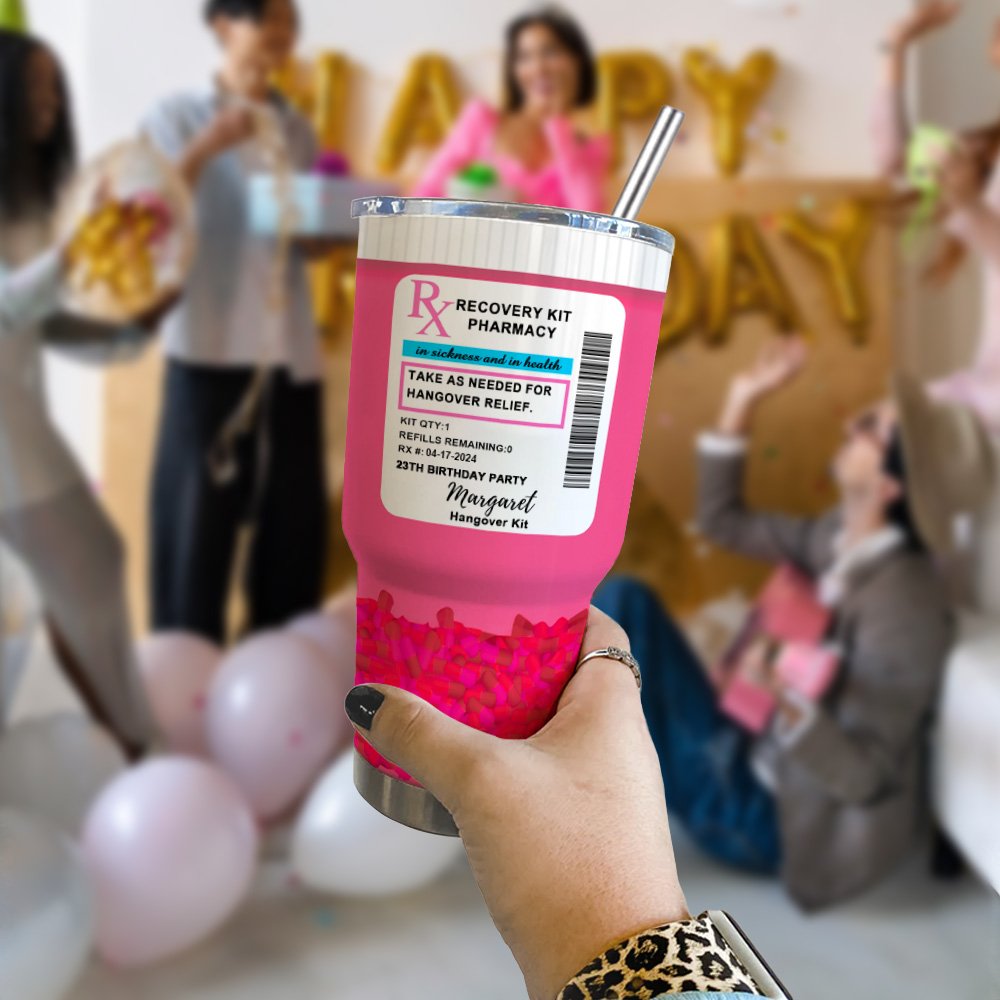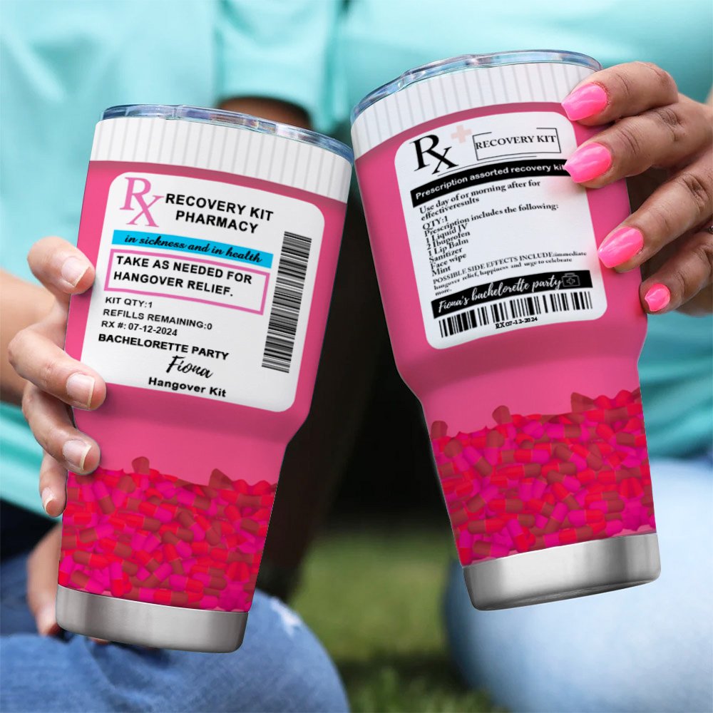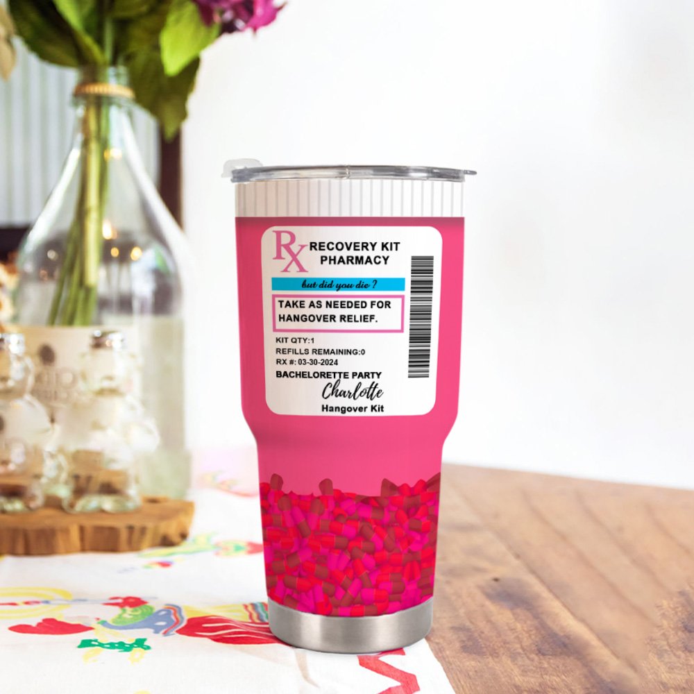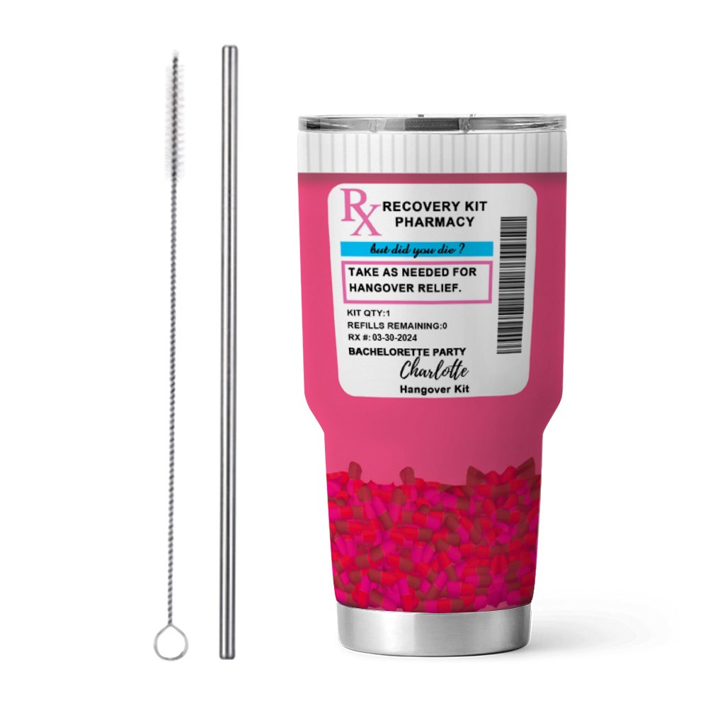 The RX pill design and vibrant pink color of this wine tumbler add a playful twist to your party favor. It's a fun and eye-catching accessory that is sure to spark conversations and bring a touch of humor to any gathering.