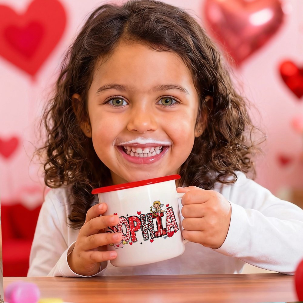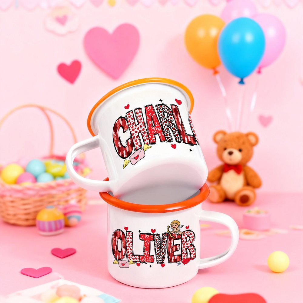 Tämä muki on suunniteltu erityisesti tunteiden ilmaisemiseen ystävänpäivänä, ja sen rungossa on yksilölliset nimet, sydämen kuvioilla koristeltu taiteellinen kirjoitus sekä suloiset Amor- ja rakkauskirje-mallit, jotka luovat erityisen ystävänpäivän tunnelman.
