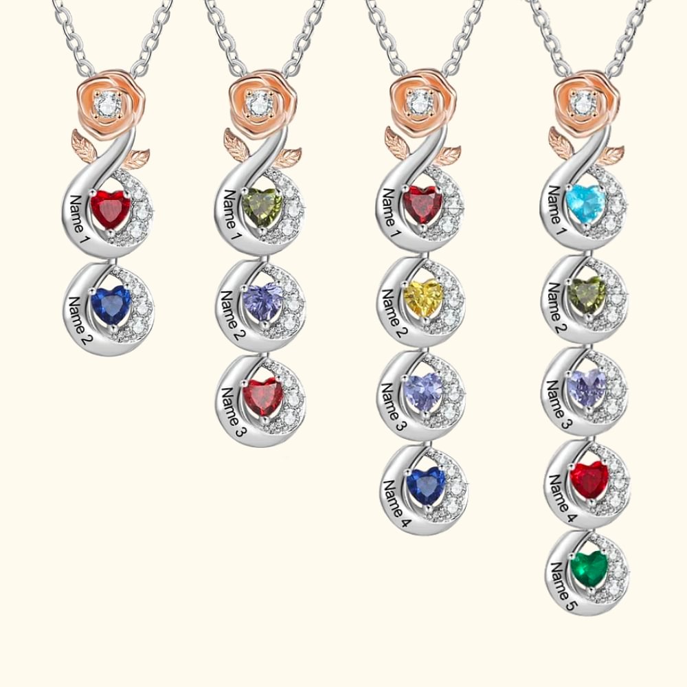 This necklace has an overall rose-shaped design, so it is elegant and charming. Under the rose comes a pendant with a birthstone as the main decoration. Therefore, the birthstone pendant is located on the root of the same rose, implying the close relationship between the family. You can choose 2-5 birthstones according to the number of family members, and this necklace is a meaningful and warm way to express the love of mom, grandma, or other family members, which is a meaningful memorial gift.