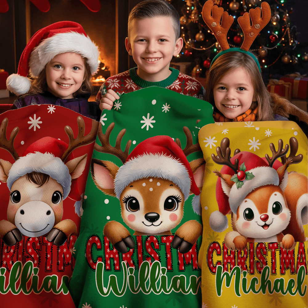 Valitse joulupukin hattua käyttävä suosikkieläimesi ja muokkaa se erityisellä nimellä, jotta huovasta tulee sekä juhlava että ainutlaatuisen henkilökohtainen. Olipa lapsesi nimi painettu joululahjaksi tai kodin koristeeksi, tästä peitosta tulee ainutlaatuinen muisto joulun ajaksi.