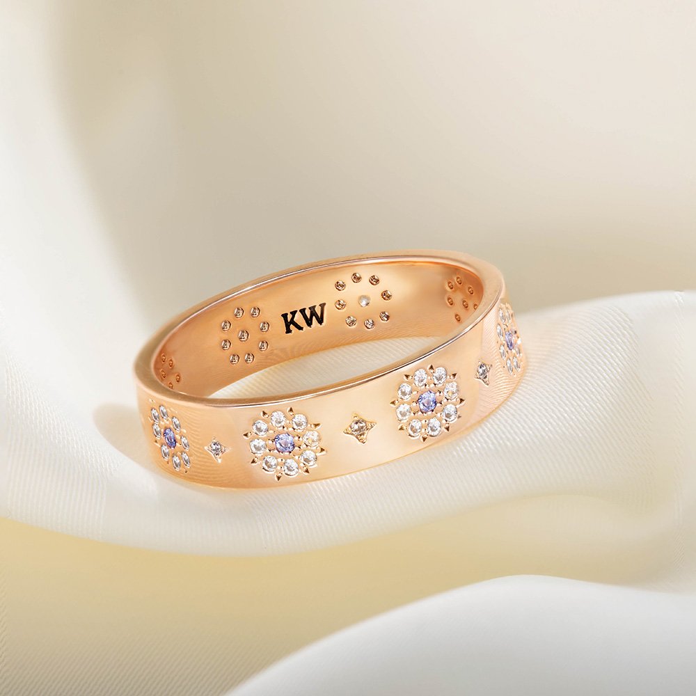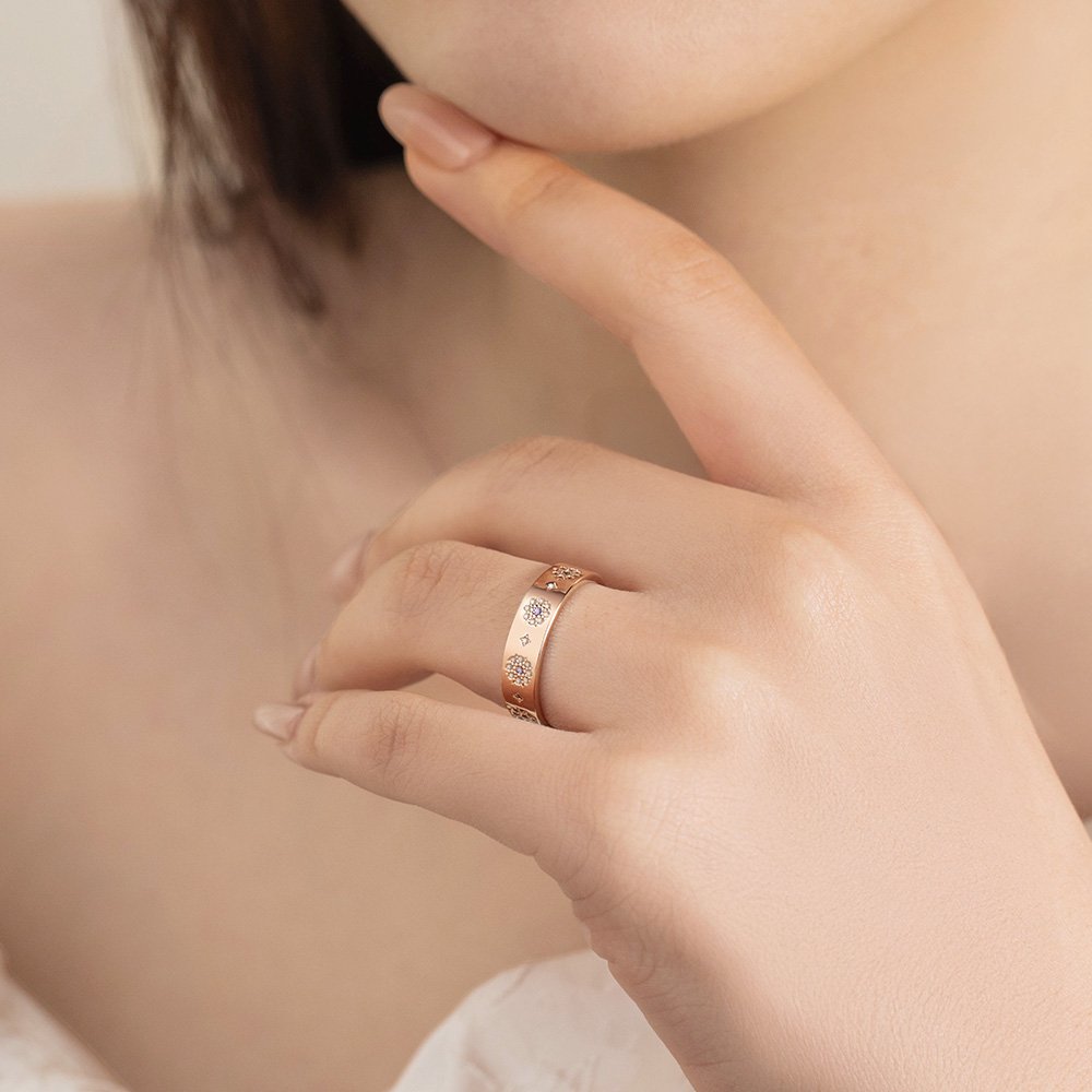 Sormus on valmistettu zirkoni-kivistä, jotka ovat hohtavien tähtien muotoisia, jotka ovat herkkiä ja kauniita, mikä tekee siitä huomiota herättävän lisävarusteen, joka osoittaa käyttäjän persoonallisuuden ja maun ja houkuttelee muiden huomion. Sisärengas voidaan räätälöidä nimellä korun luomiseksi.