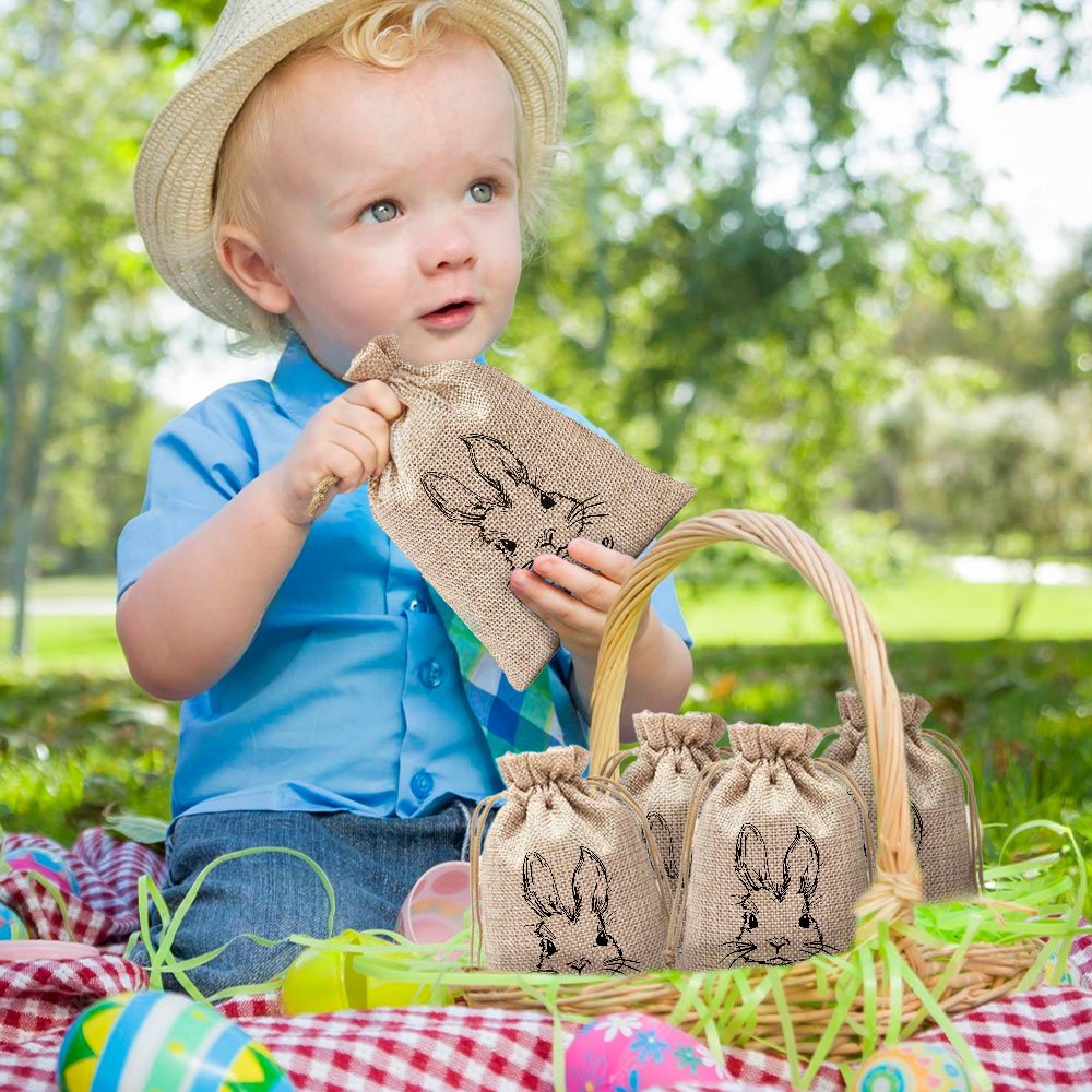 The bag is made of high-quality jute, and exudes a rustic charm. The natural texture adds a touch of flavor to the bag. The bags are printed with cute bunny prints to add a festive atmosphere to an Easter event or party. The convenient drawstring design prevents items from being lost, and you can also use drawstrings as handles. So you can move better.