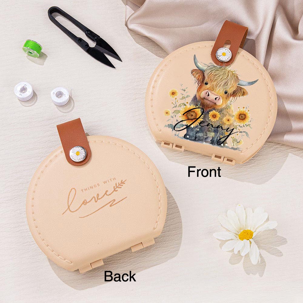 This portable sewing kit set features a beautiful sunflower highland cow handwork design that adds a personalized touch to the product. The unique and charming design makes it a great gift for any woman, family member, or friend.