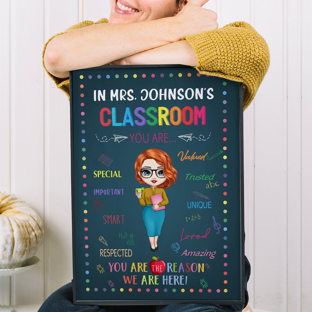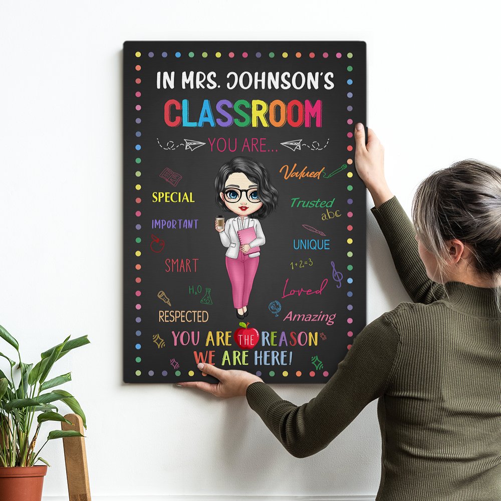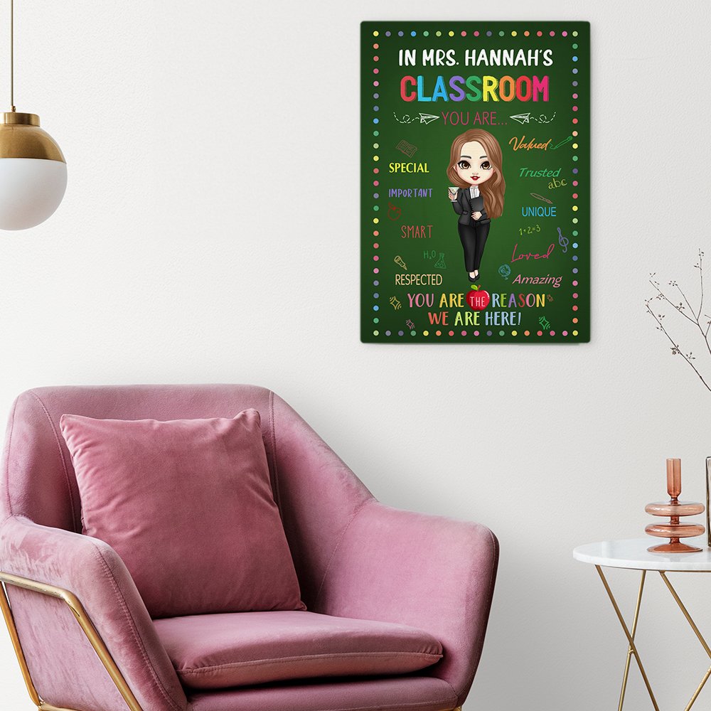 Tämä hieno kangaskuva näyttää opettajan tyylin hyvin elävästi ainutlaatuisen muotoilun avulla. Mukautettu opettaja sarjakuva clipart ja nimi, jotta jokainen yksityiskohta on täynnä sydäntä ja välittää loputtoman kiitollisuutesi. Voit myös valita kehyksen mieltymyksesi mukaan.