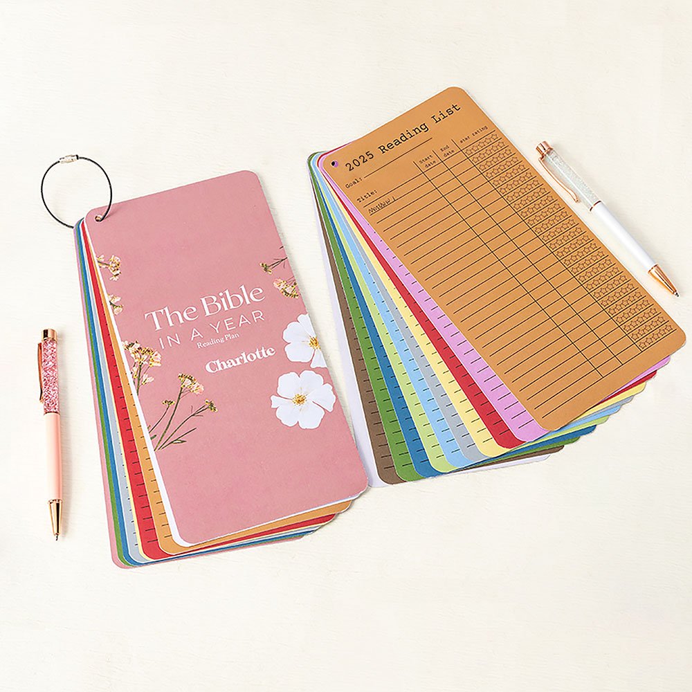 Sarjan kätevän muotoilun ansiosta voit irrottaa ja koota sivut mukana tulevan renkaan avulla, joten voit kuljettaa mukanasi juuri sitä, mitä tarvitset. Sen kompakti koko sopii täydellisesti laukkuihin tai raamattukoteloihin, joten se on aina saatavilla, minne ikinä menetkin. Tarkistuslistan asettelu auttaa sinua seuraamaan edistymistä ja edistää samalla johdonmukaisia lukutottumuksia.