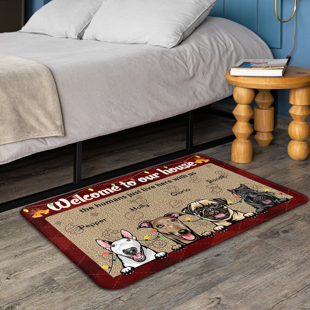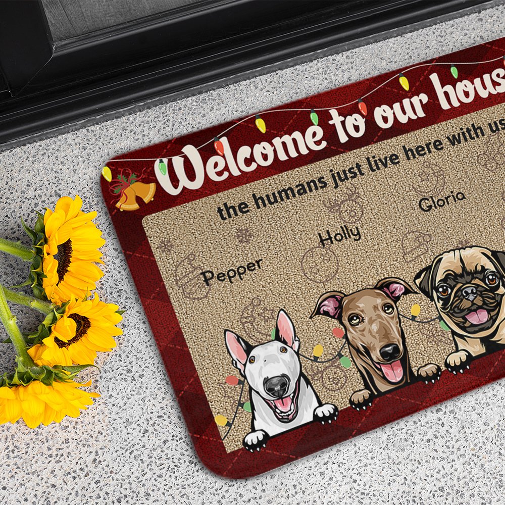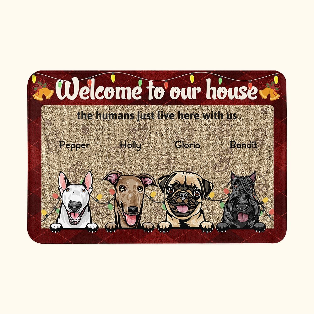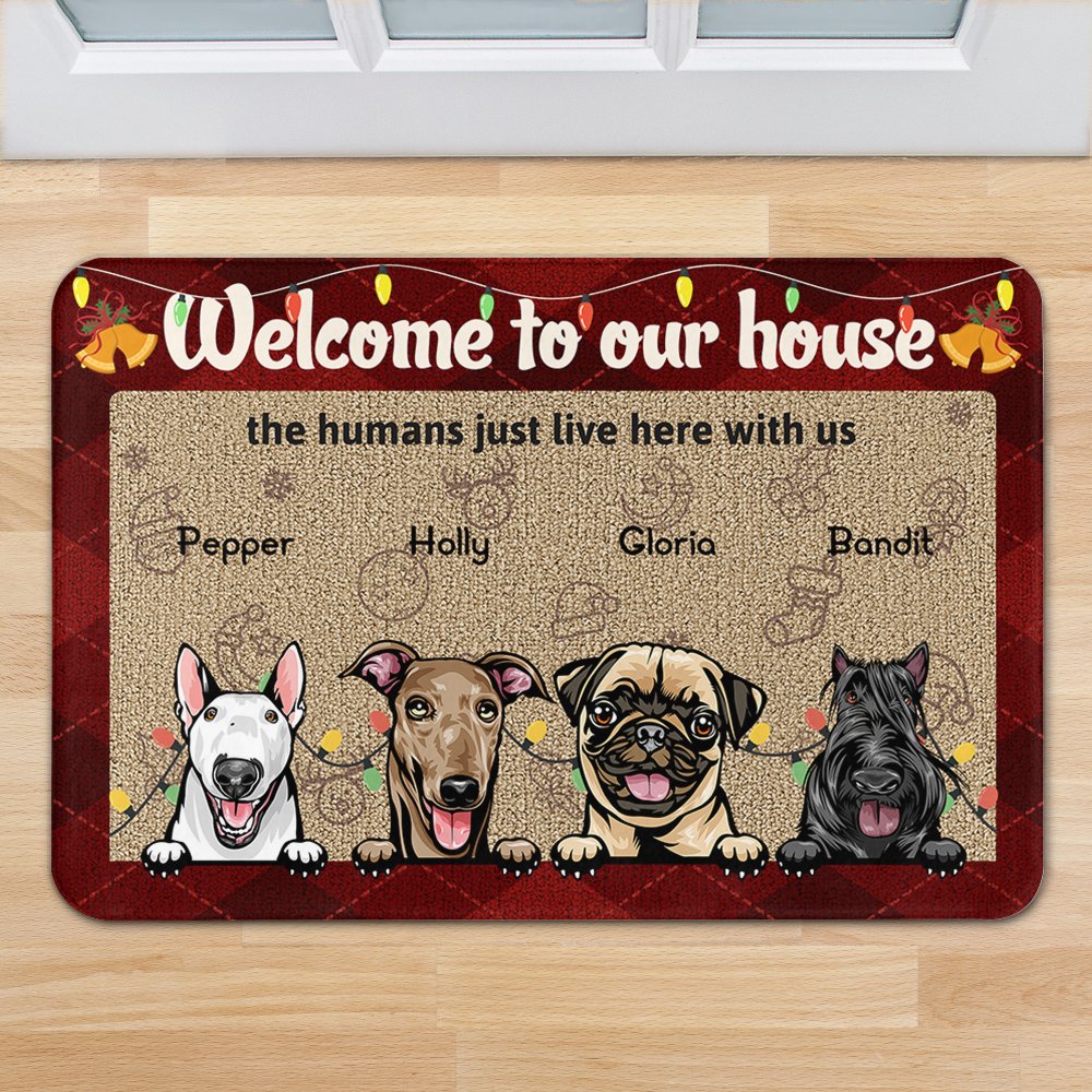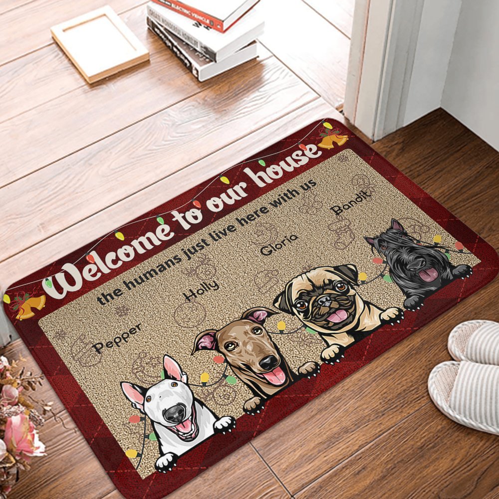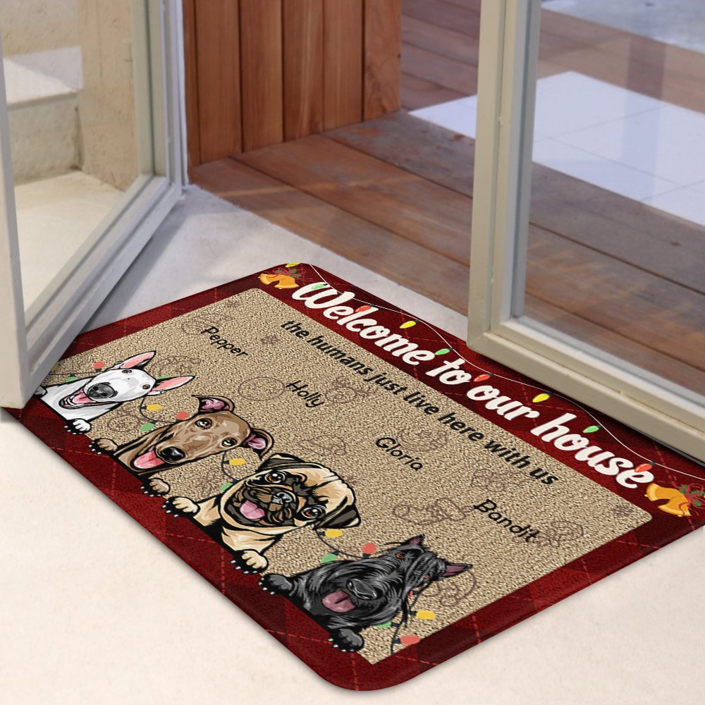 The message "The Humans Just Live Here With Us" is beautifully printed on the floor mat, means that pets are human family members too.