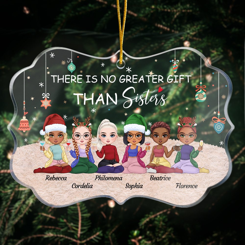 The centerpiece of this stunning ornament is a heartfelt quote, "There Is No Greater Gift Than Sisters", beautifully printed on the front. This phrase symbolizes the unbreakable bond you share with your best friend, reminding them of the countless memories and adventures you've experienced side by side. Every time they glance at this ornament, they'll be reminded of the cherished moments that have shaped their friendship.