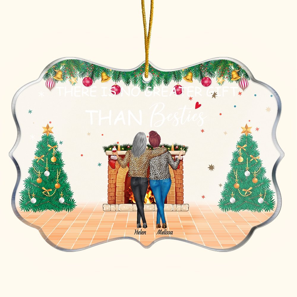 The message "There Is No Greater Gift Than Besties" is beautifully printed on the ornament, through a witty and fun expression of friendship and it makes a wonderful gift to honor your meaningful friendship.