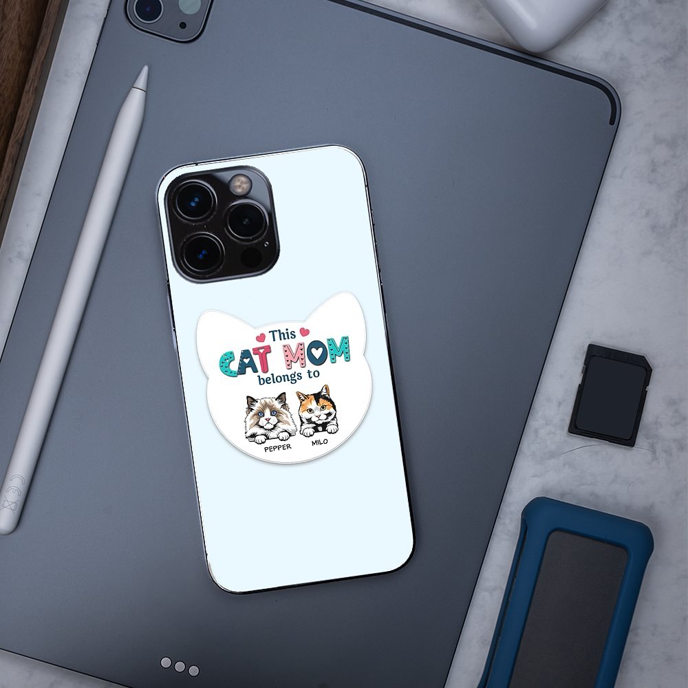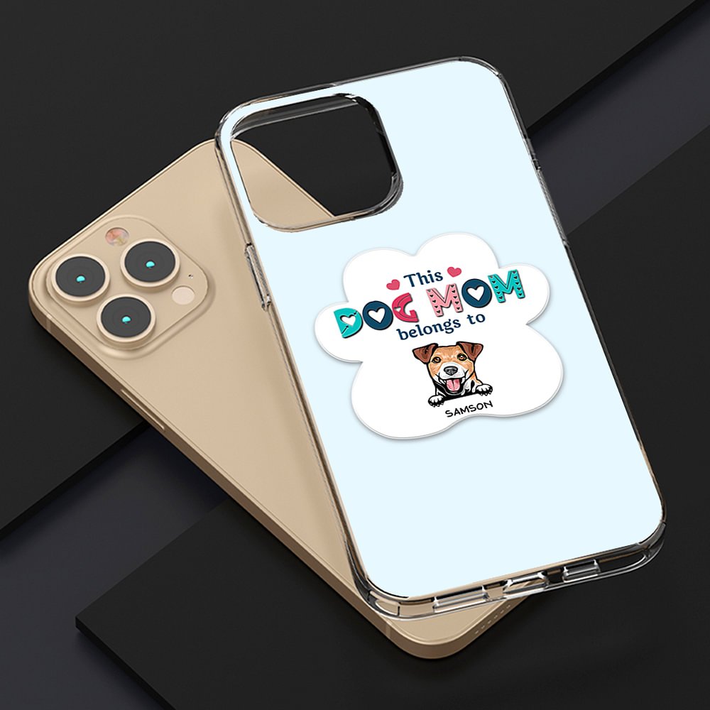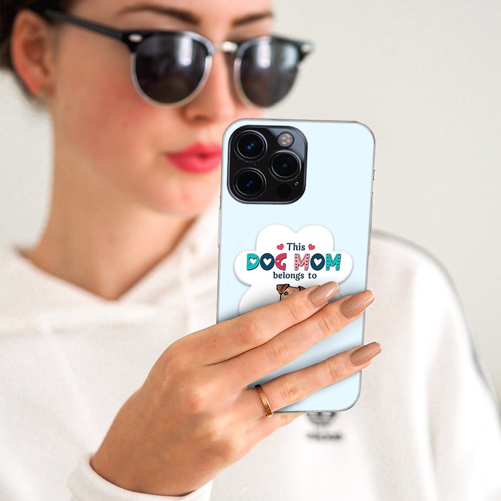 Puhelinkotelossamme on lemmikkiteema, jossa on suuri valkoinen koiran tassunjälki tai kissan avatar vaaleansinisen taustan keskellä, ja keskellä on söpö lemmikki, jonka keskellä on lause "This dog mom/cat mom belongs to...". , joka on hauska ja nokkela. Voit valita lemmikkieläinten määrän ja rodun ja lisätä myös niiden nimet, jotta siitä tulee ainutlaatuinen ja huomaavainen lahja.