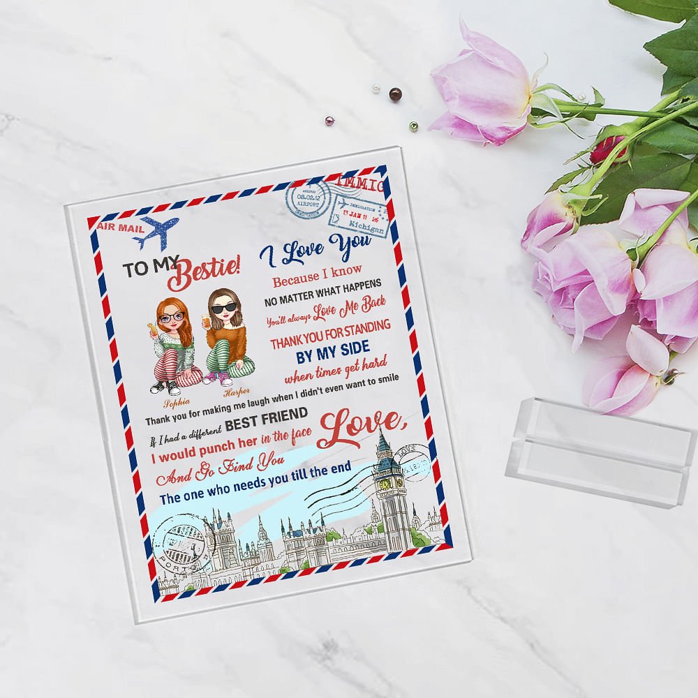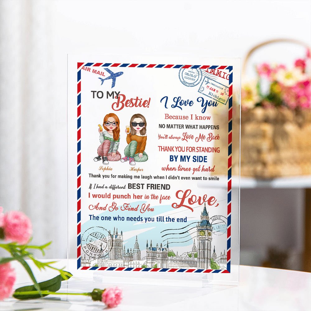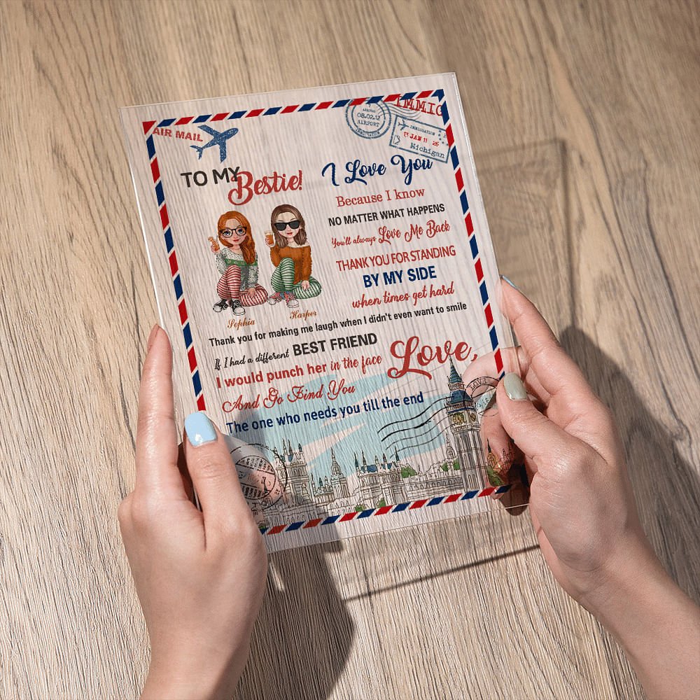 This rectangle plaque is a one-of-a-kind present for the best sister. According to your characteristics, there are so many details for you to customize, such as hairstyle, hair color, skin tone, and posture. Give this besties plaque to your friends to express your love for her.
