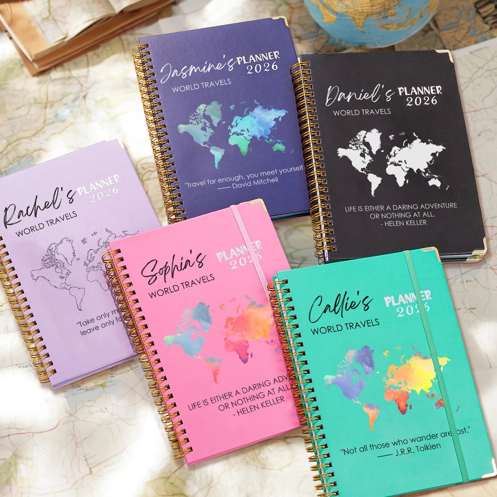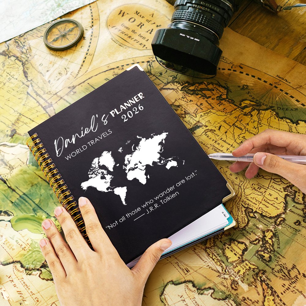 Karttojen ja matkojen ympärille keskittyvä kokonaisuus huokuu tutkimusmatkailun ja taiteellisuuden tunnetta, ja siinä yhdistyvät saumattomasti suunnittelutoiminnot ja matkustamisen henki. Muokattavissa olevat nimet ja teksti, karttakuvitukset ja selkeät vuosi-, kuukausi- ja viikkosuunnittelumoduulit antavat käyttäjille mahdollisuuden suunnitella matkareittinsä tehokkaasti.