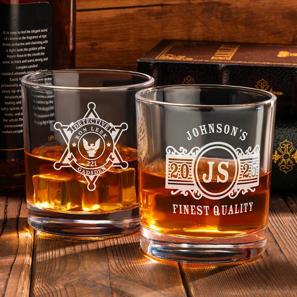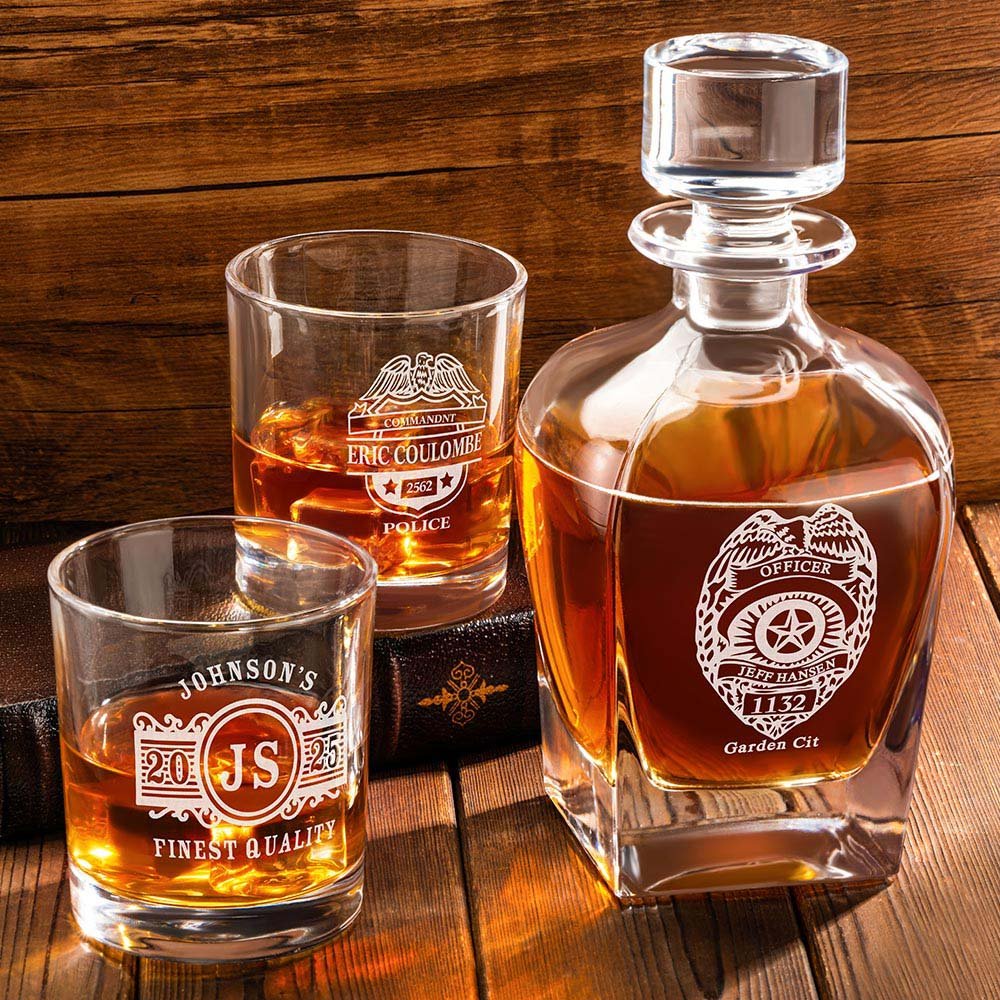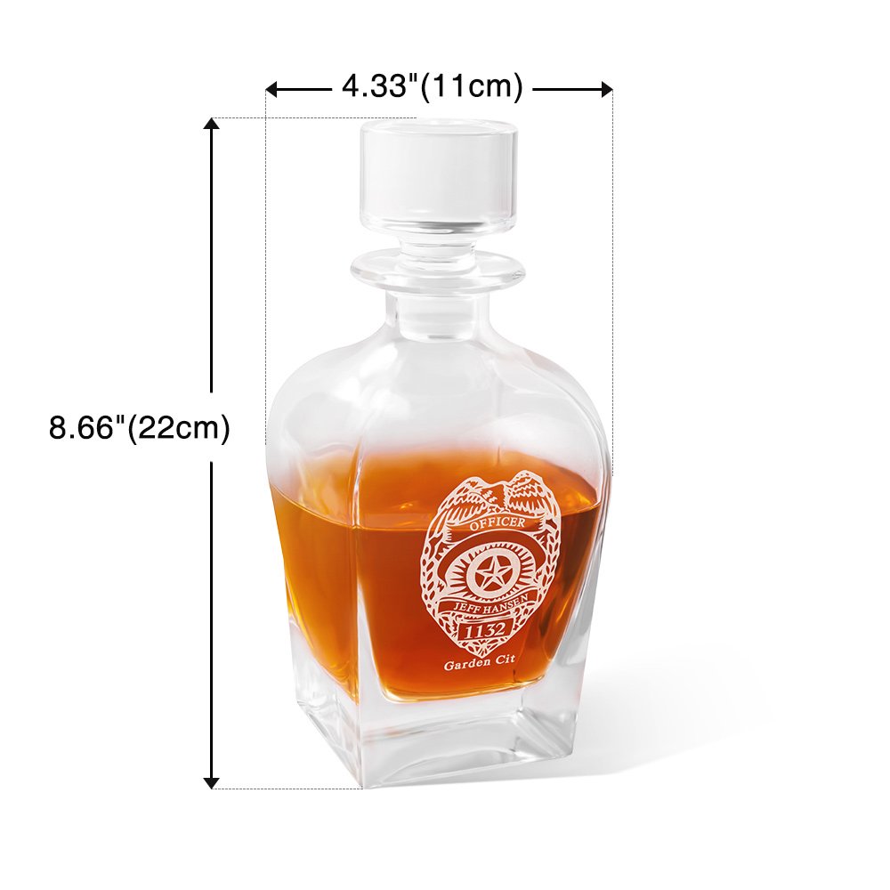 Tässä 10 unssin viskilasissa on kilpi, poliisimerkki, lentävä kotka ja muita symbolisia elementtejä, jotka on integroitu lasin runkoon. Muotoilu on syvästi ammattimainen. Jokainen juoma näyttää kunnioittavan lainvalvonnan henkeä ja pohtivan vastuita ja tehtäviä. Luo ainutlaatuinen ja huomaavainen lahja.