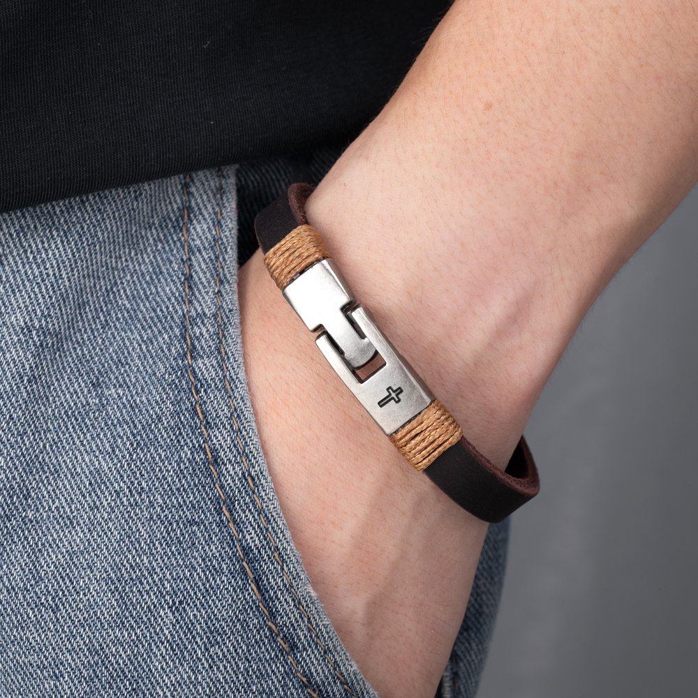 Tämä nahkainen ristirannekoru yhdistää taitavasti syvällisen uskonnollisen symboliikan ja modernin miesten asusteen. Valikoitu nahka ja seoskiinnikkeet luovat yksinkertaisen mutta kestävän perustan, kun taas risti symboloi uskoa. Enemmän kuin pelkkä koristeellinen lisävaruste, se on tyylikäs yksilöllisyyden ja yhteenkuuluvuuden tunteen ilmaus, täydellinen modernille miehelle, joka etsii sisäistä ja ulkoista harmoniaa.