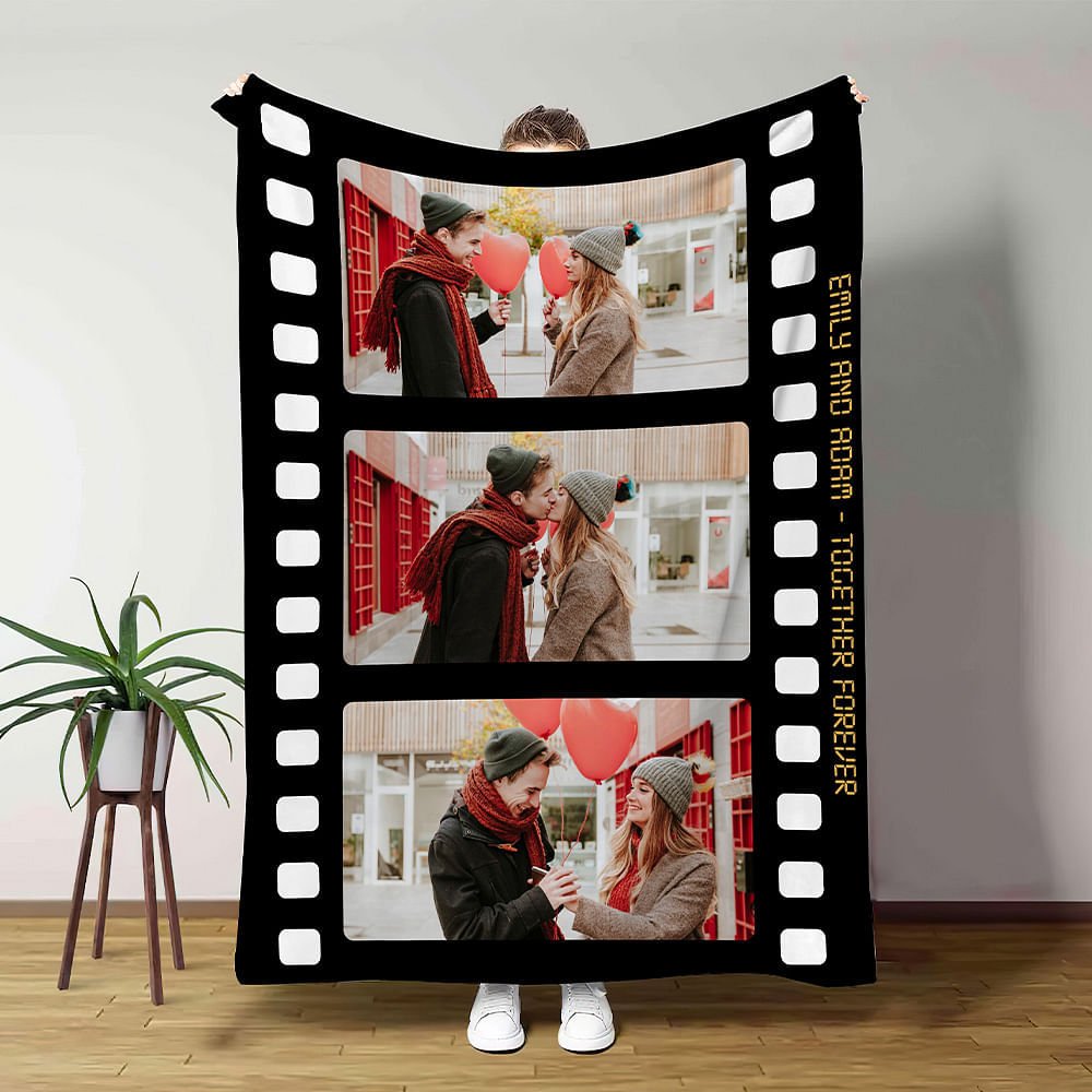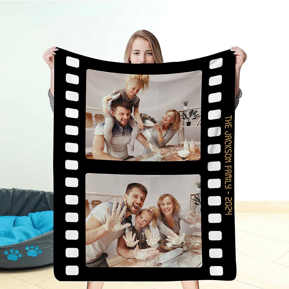 Designed with the nostalgic aesthetic of classic film strips, this cozy blanket allows you to immortalize your favorite couple or family photos, transforming them into a one-of-a-kind home decor piece.