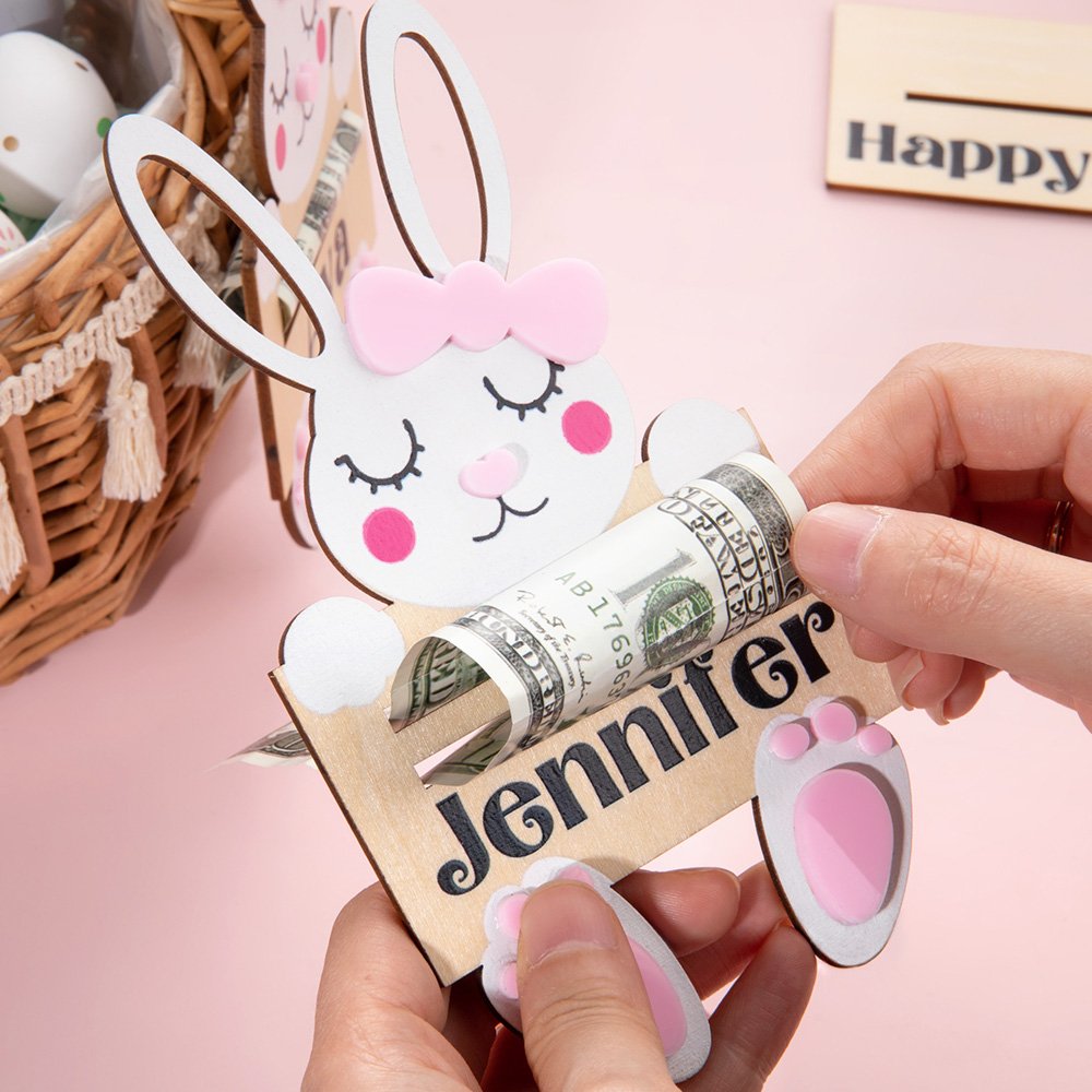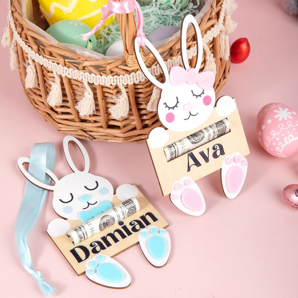 This Easter money holder is perfect for an Easter gift. This money holder comes in two different styles for option, the cute bunny design is very festive, you can customize your child's name on it, and the base can also be customized with a blessing text to make it unique and personalized, creating a one-of-a-kind gift to express your love and warmth.