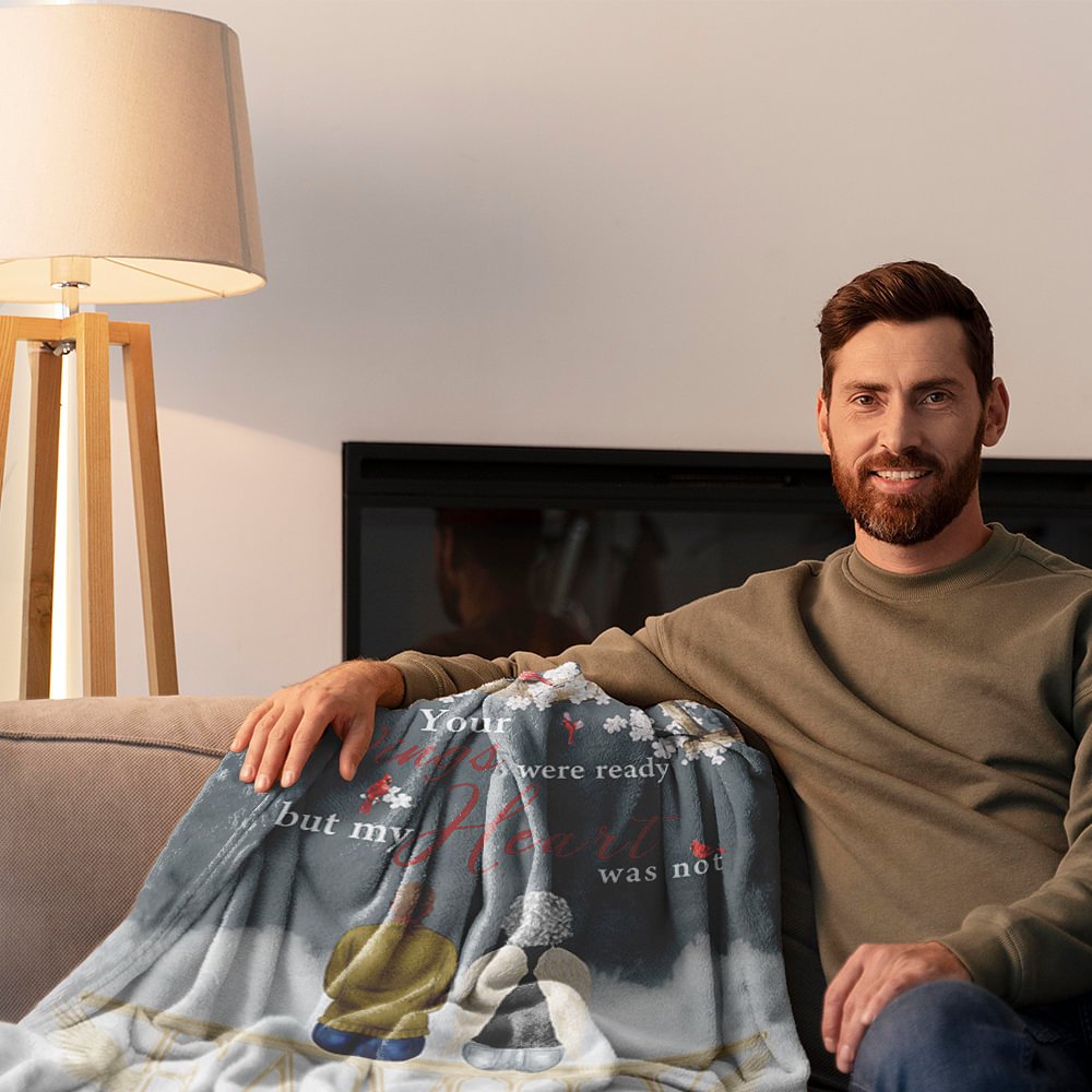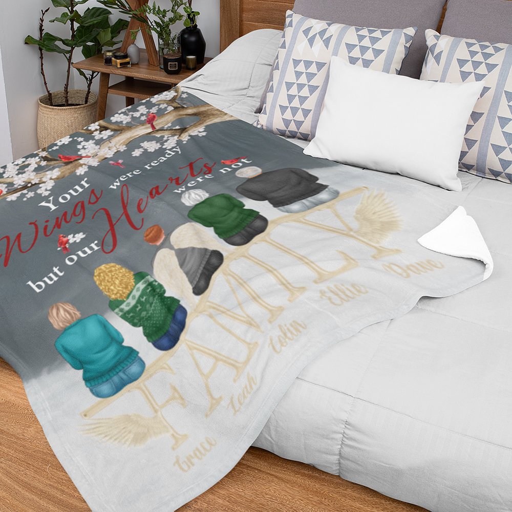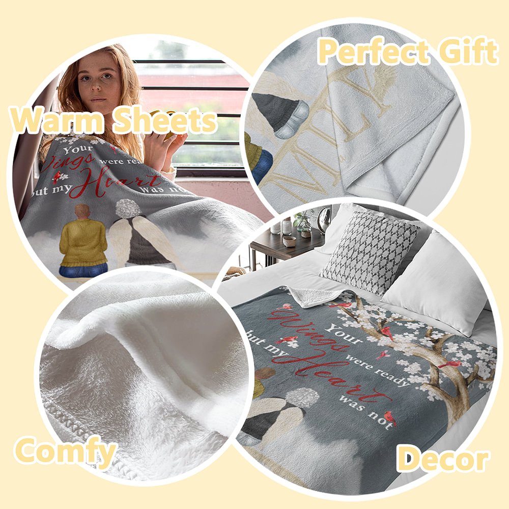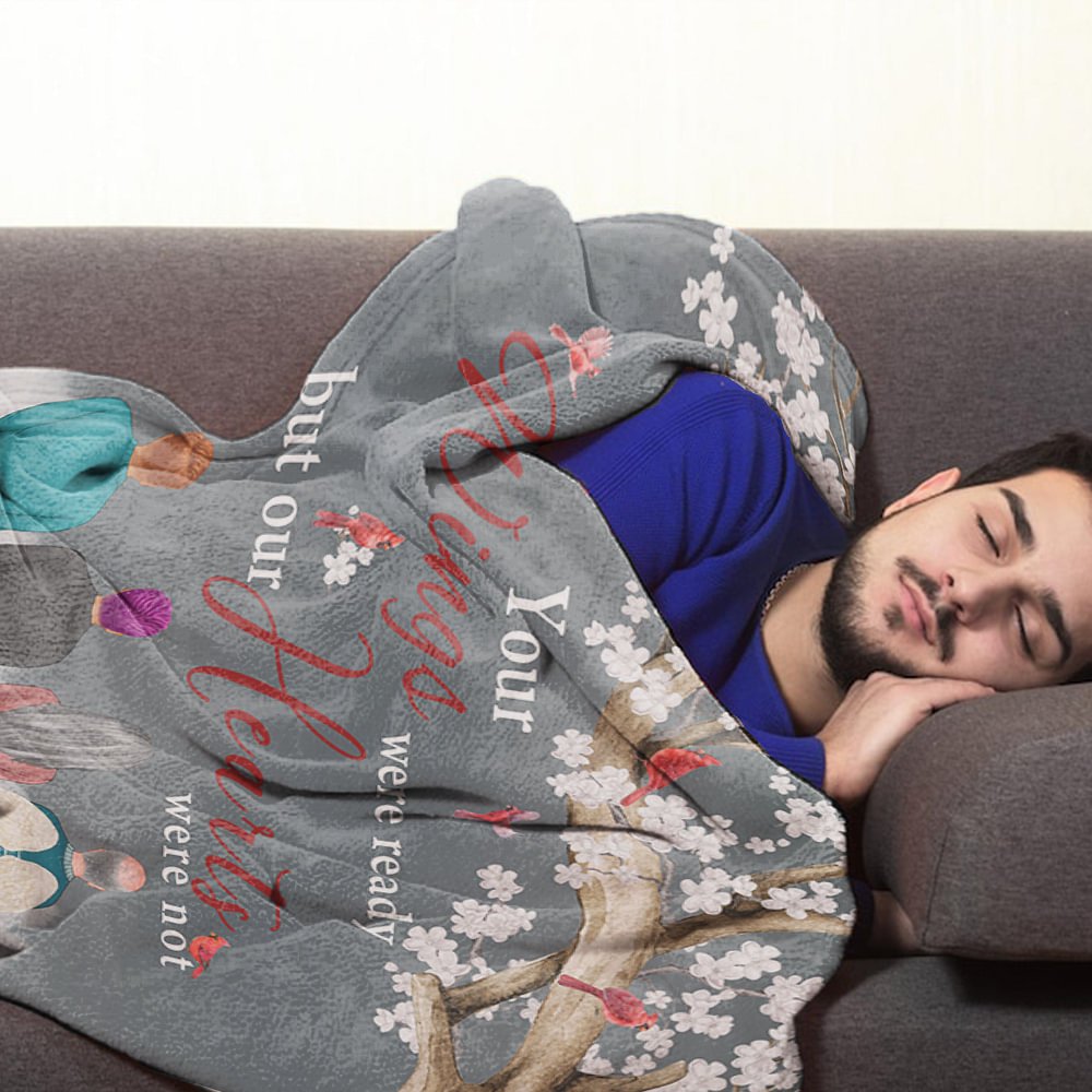 The message "Your Wings Were Ready But My Heart Was Not/Your Wings Were Ready But Our Hearts Were Not" is beautifully printed on the blanket, reminding the people to always remember loved ones who have died.