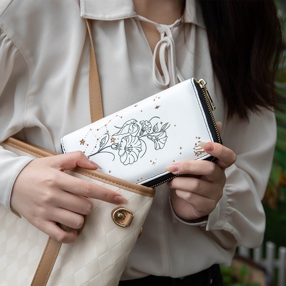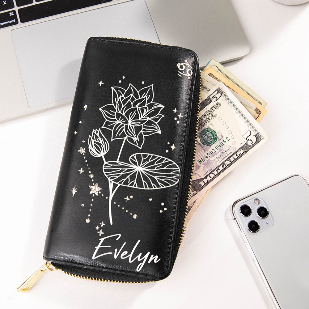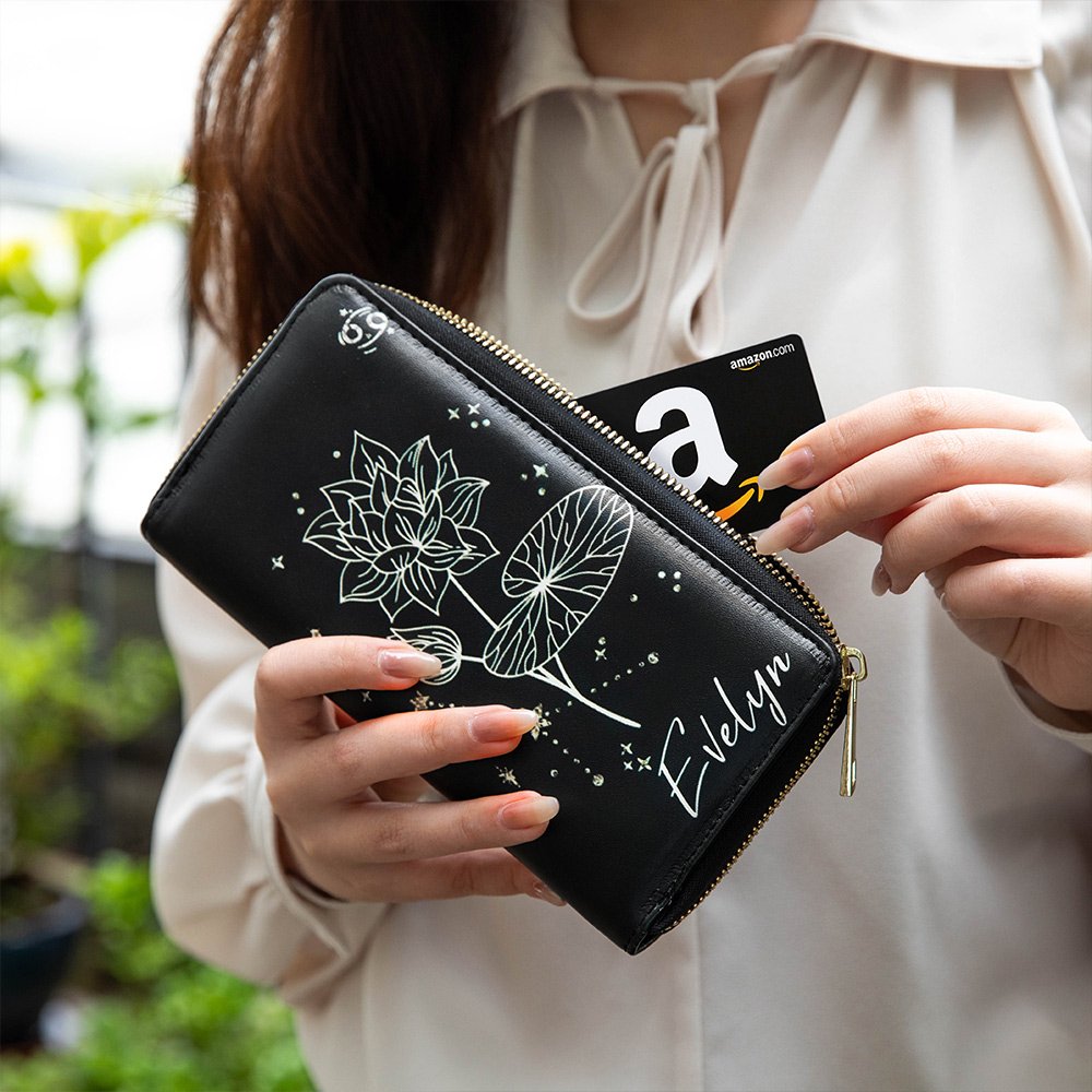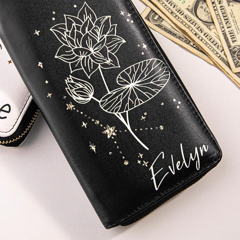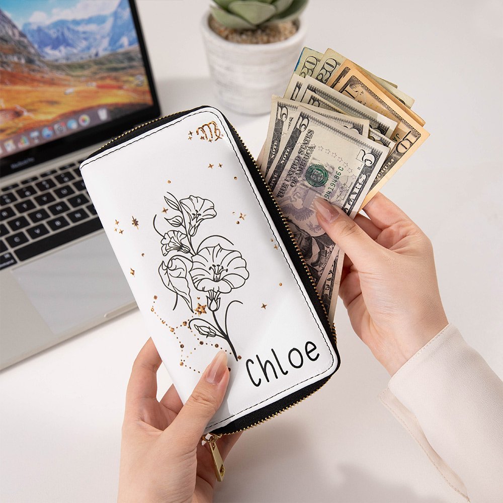 This is a simple yet unique wallet that can be customized with the recipient's zodiac flower and name, adding a unique and personalized touch to it, making it a meaningful and precious gift.