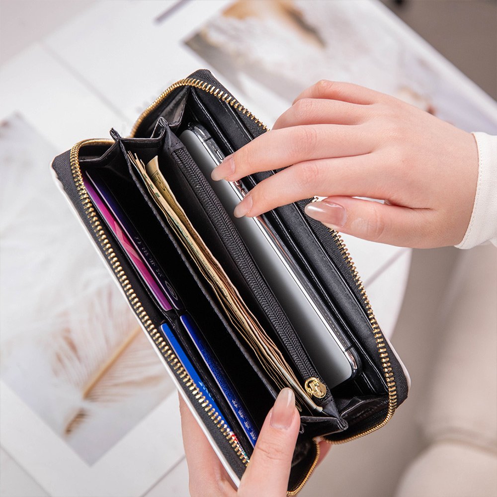 This wallet is designed with multiple card slots, spacious zipper pockets, etc., providing ample storage space for various cards and coins. It also has a full-length bill compartment and a large zipper pocket, so you can stay organized anytime and anywhere, even when you're on the go. It provides convenient organization and easy access to your essentials without having to carry multiple wallets, making it perfect for shopping trips or outings.